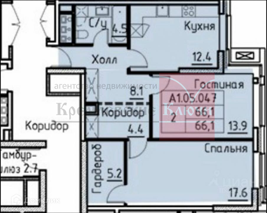 Общая площадь 66.1 м2