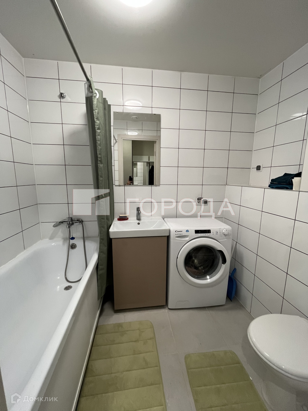 В ванной комнате новая современная сантехника, стиральная машина.