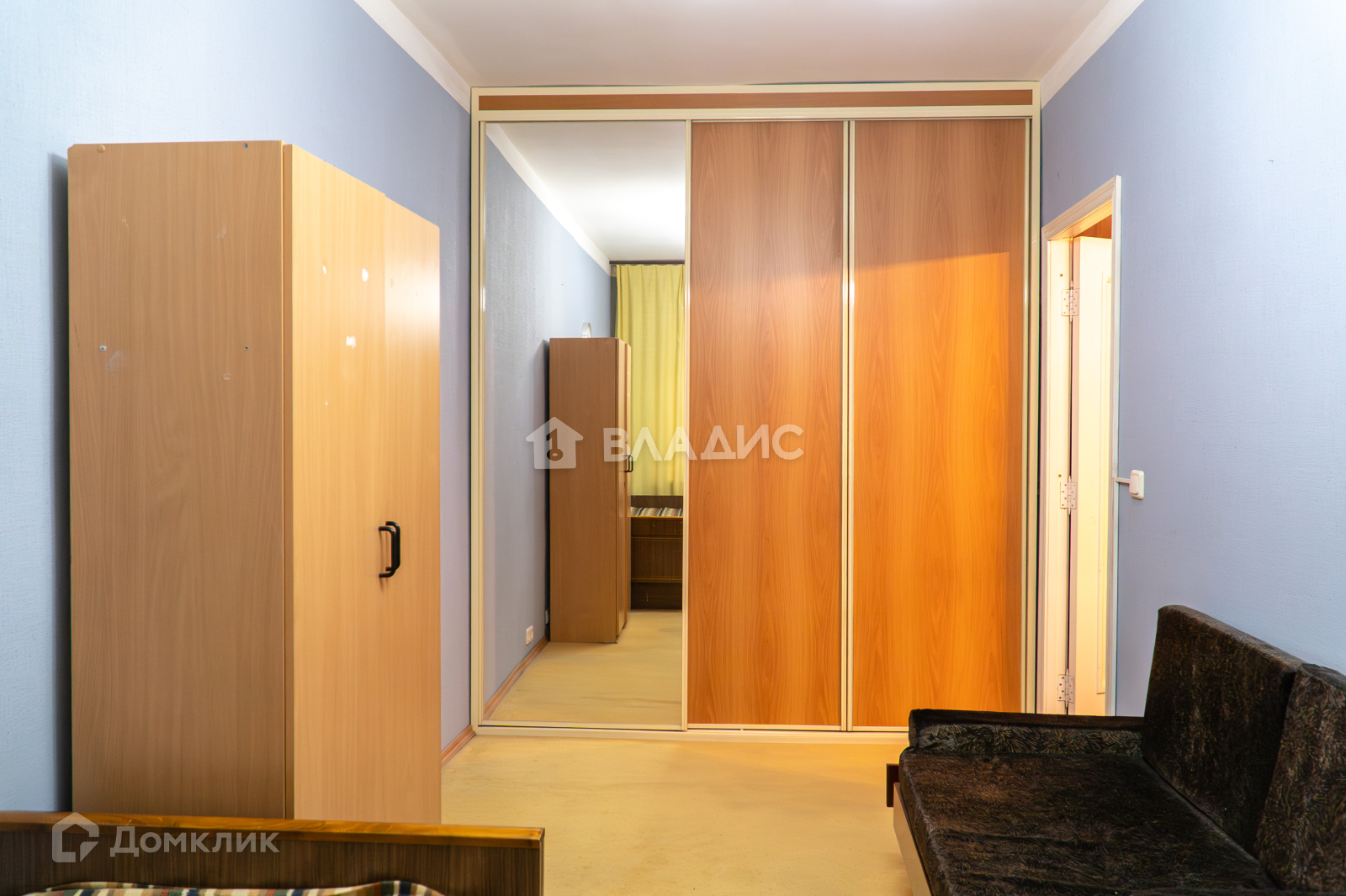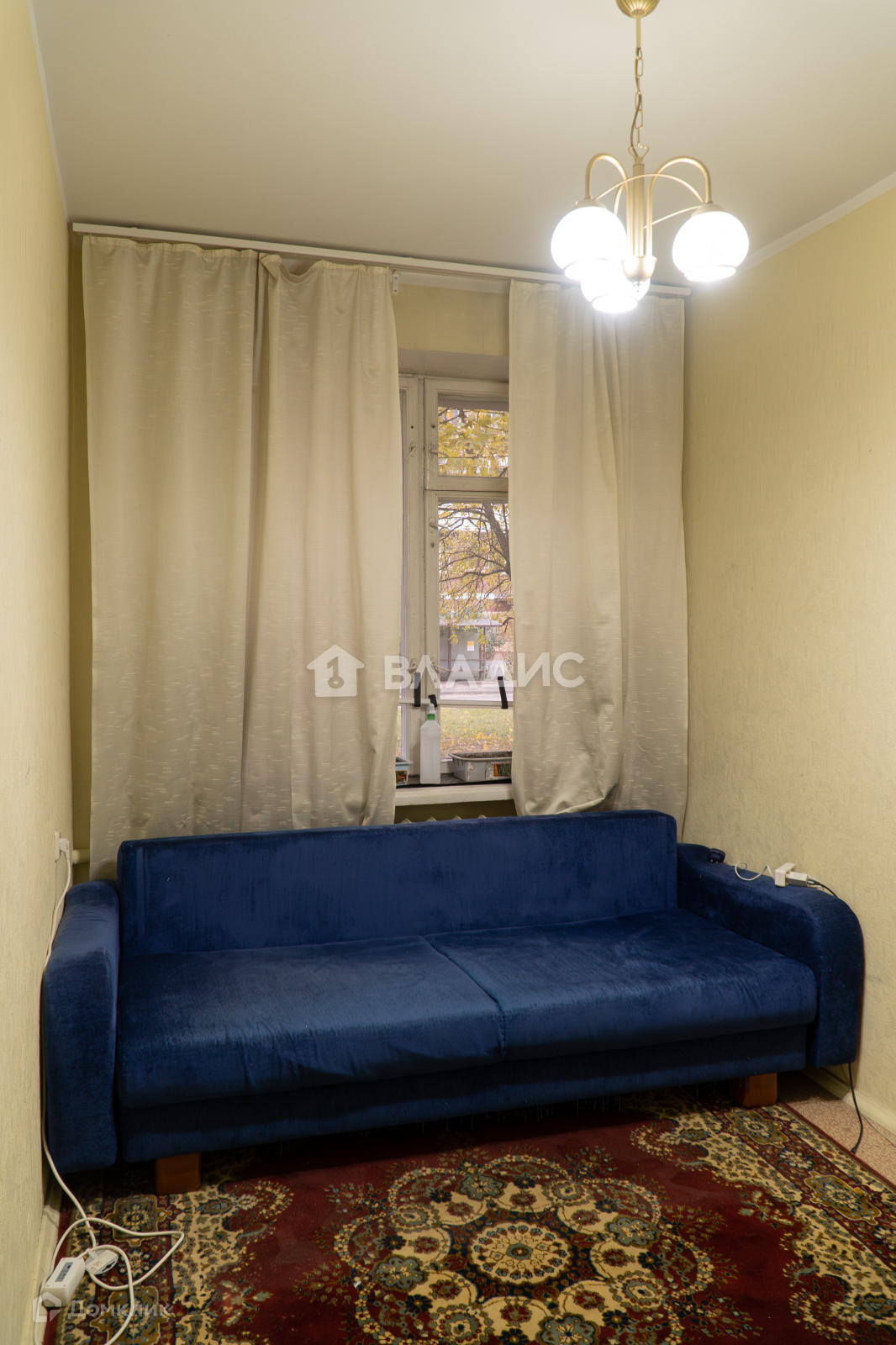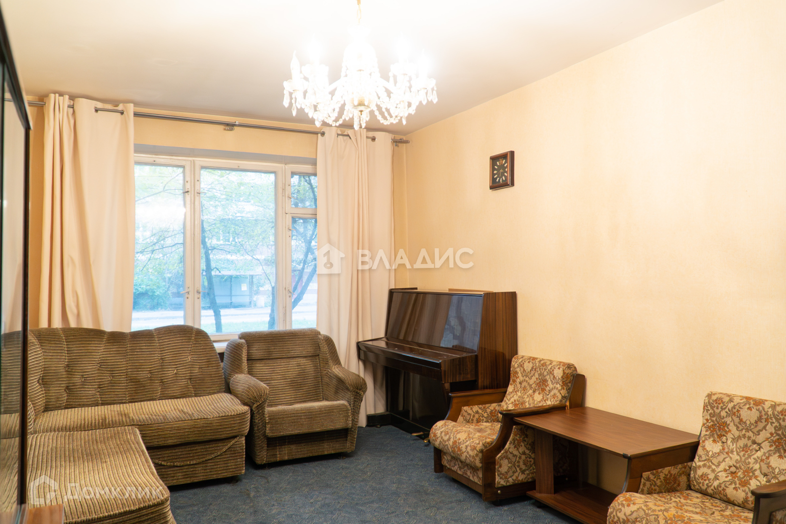Высокий первый этаж, перед окнами деревья. Три комнаты. В коридоре много места для хранения вещей.