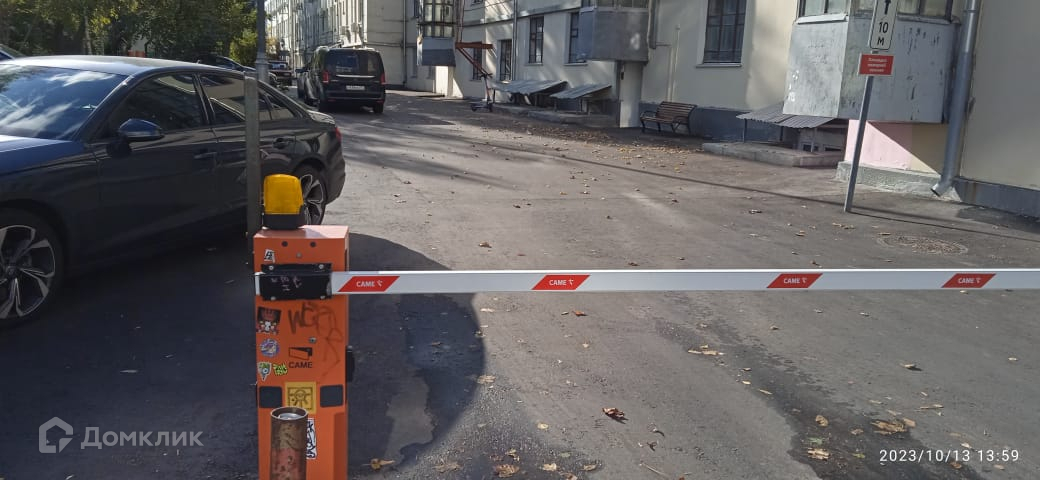 Парковка во дворе, въезд под шлагбаум.