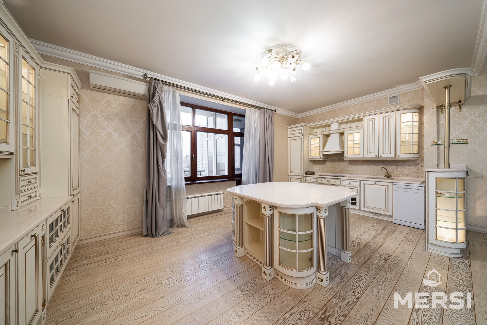 ОЧЕНЬ ПРОСТОРНАЯ, светлая КВАРТИРА. Качественный дизайнерский ремонт, функциональная планировка. Высокие потолки 3.2 метра. СТУДИО - 80м2. Кухня + гостиная - 3 изолированные просторные комнаты (36-27-20м2) - спальни. 4 застекленные и обогреваемые лоджии, 3 САНУЗЛА : один в гостевой, два в спальных зонах с биде и большой двухместной ванной, во всех комнатах кондиционеры и подогрев полов. Кухня встроенная, вся бытовая техника, постирочная - стиральная и сушильная машины. Кондиционеры во всех комнатах, окна на храм, панорамный вид на Тропаревский парк.