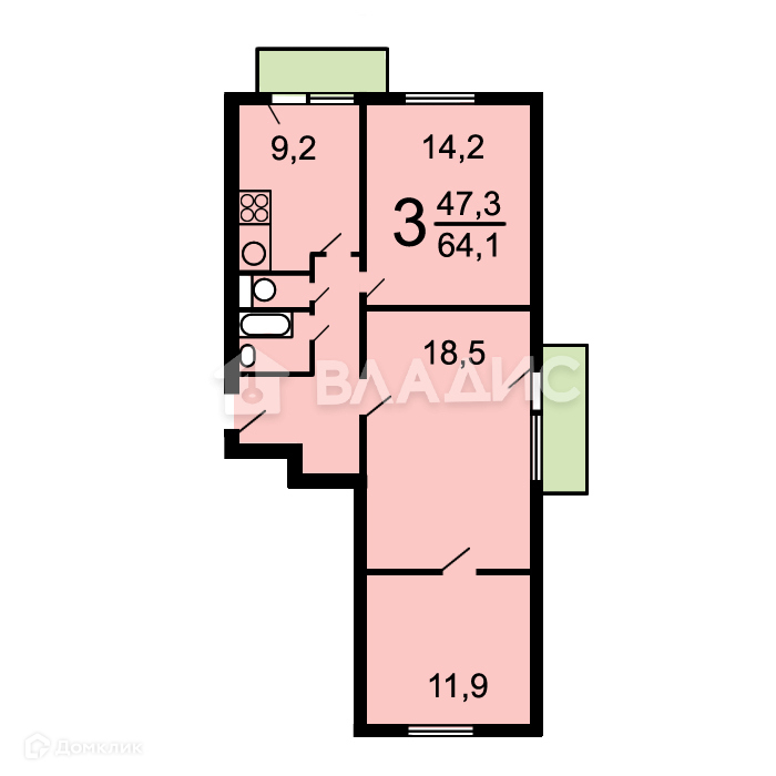 Общая площадь 64.1 м2