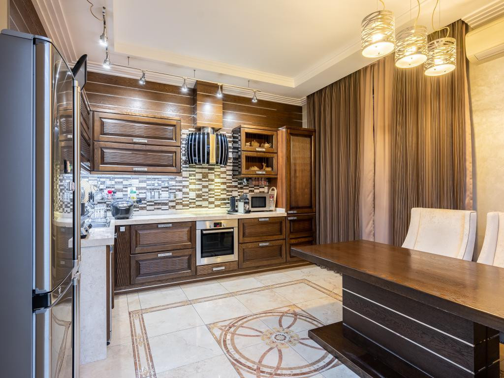Дизайн проект разработан известным московским архитектурным бюро. Эксклюзивный ремонт с использованием строительных и отделочных материалов премиум класса. ( мрамор, натуральный камень ) Вся Мебель изготовлена по индивидуальному проекту ( использован массив дерева )