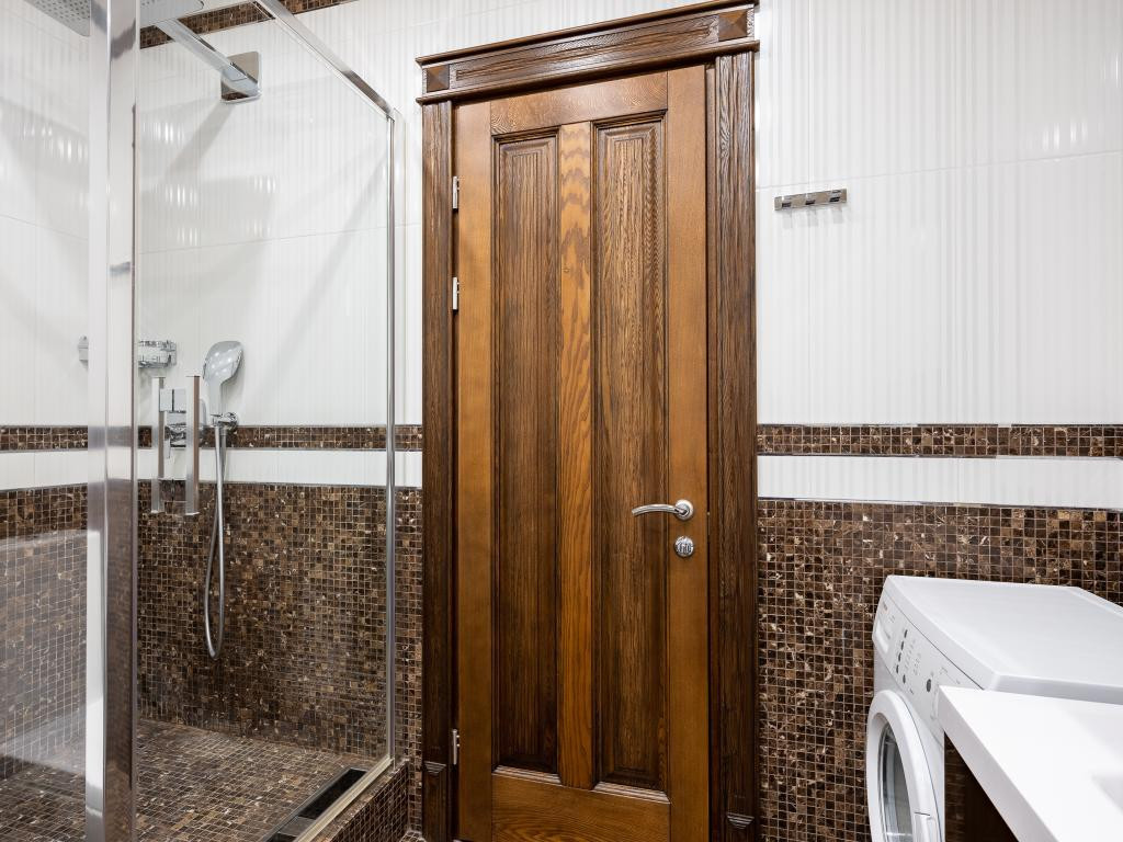 Вся Мебель, межкомнатные двери, полы из натурального дерева ценных пород. На кухне теплый пол из натурального камня, а так же тёплые полы в сан узлах и в прихожей