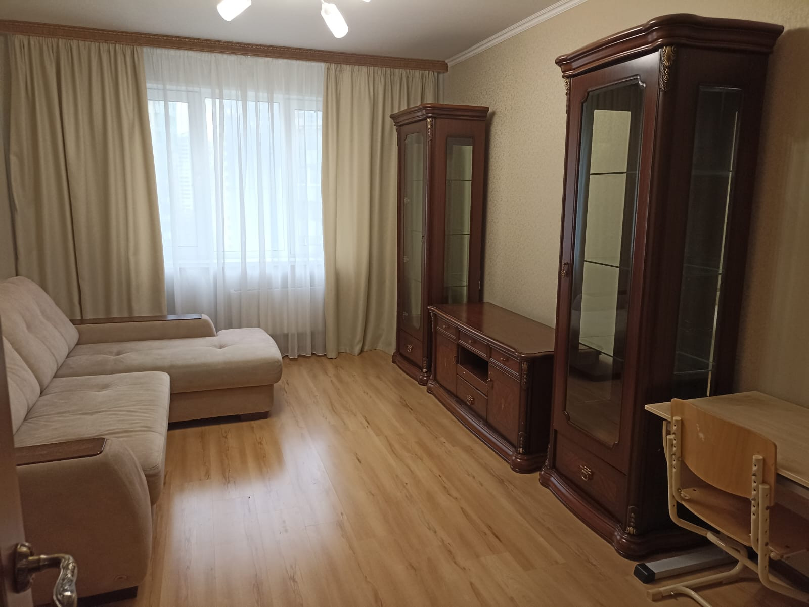 Квартира с  хорошим ремонтом, полностью укомплектованная мебелью, со  встроенной кухней и бытовой техникой.