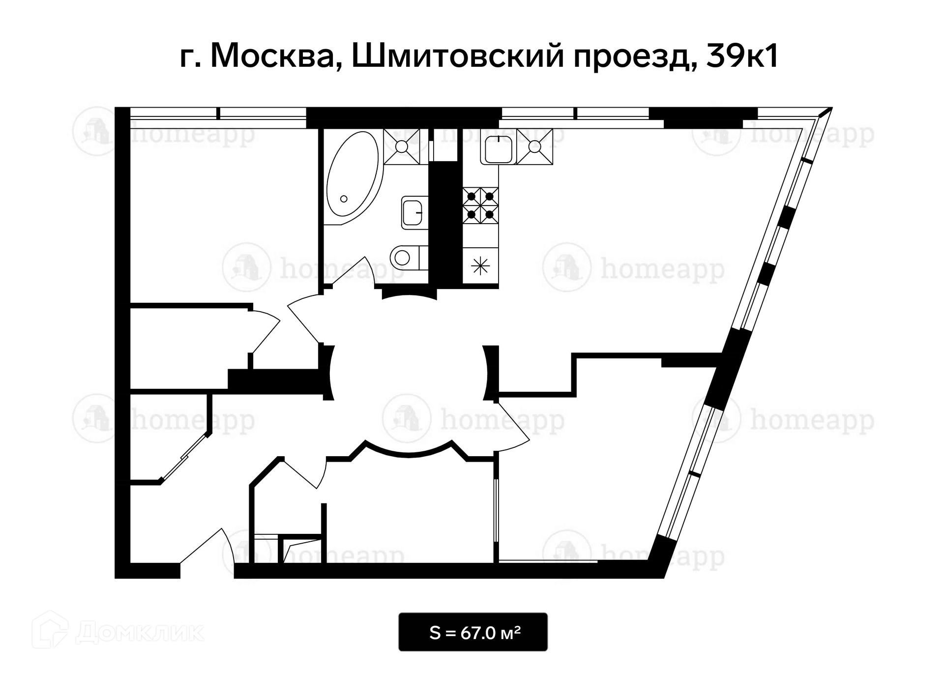 Общая площадь 67 м2