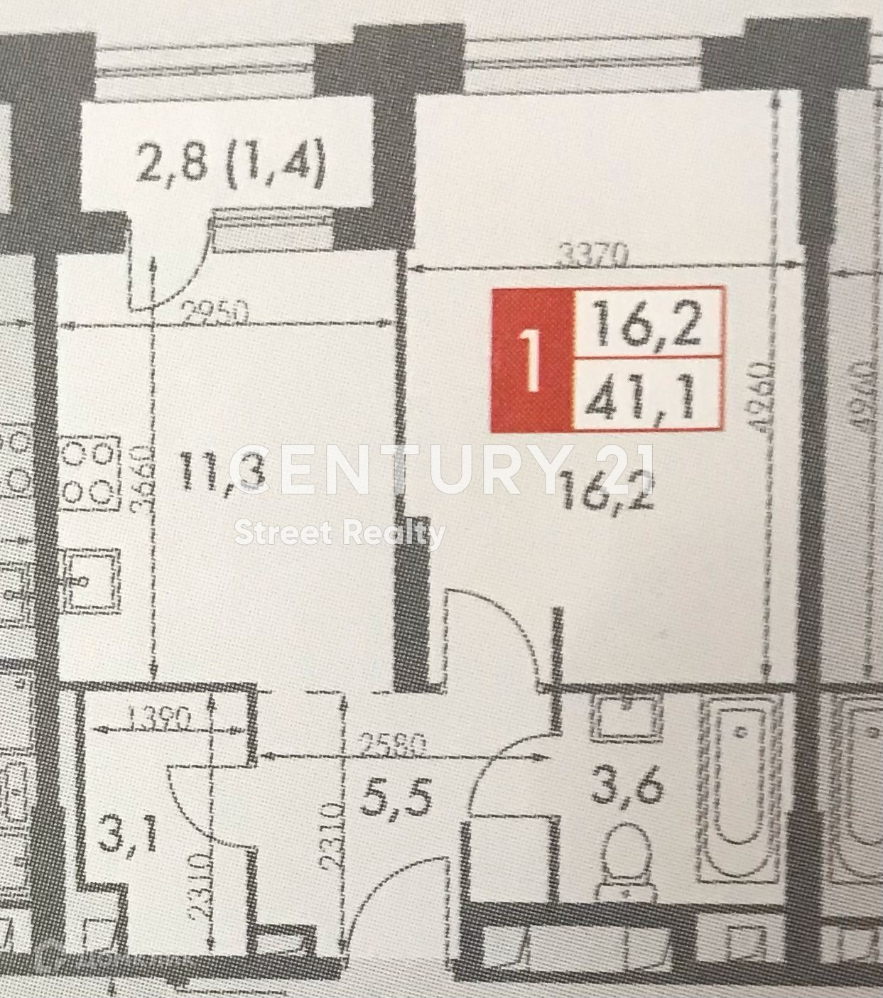 Общая площадь 41 м2