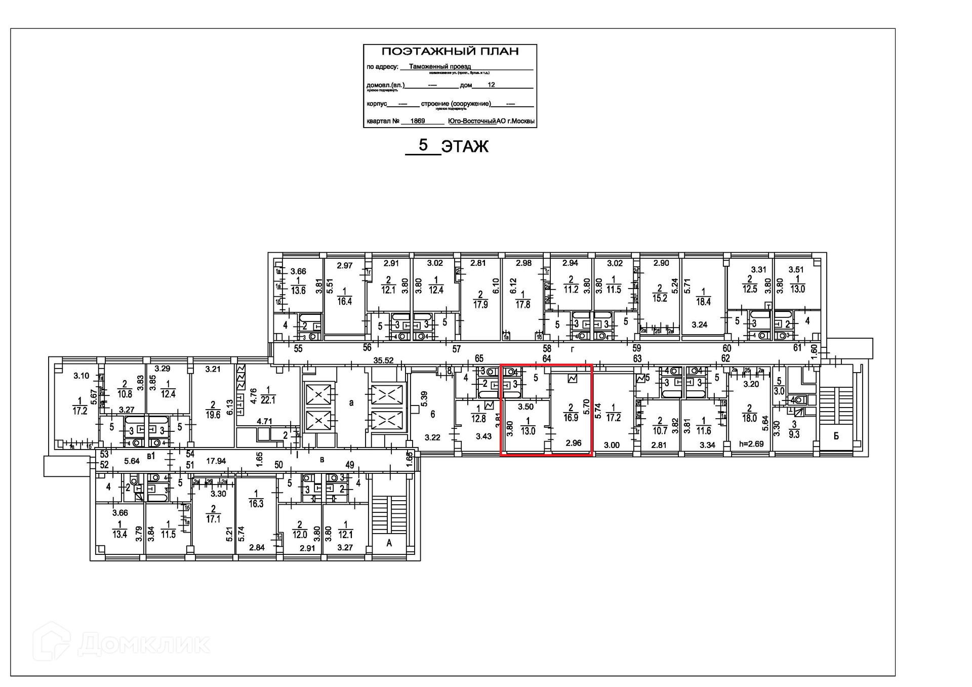 2-комнатная квартира, 36.4 м2, этаж 5 / 16, на продажу в Москве, Таможенный проезд, 12
