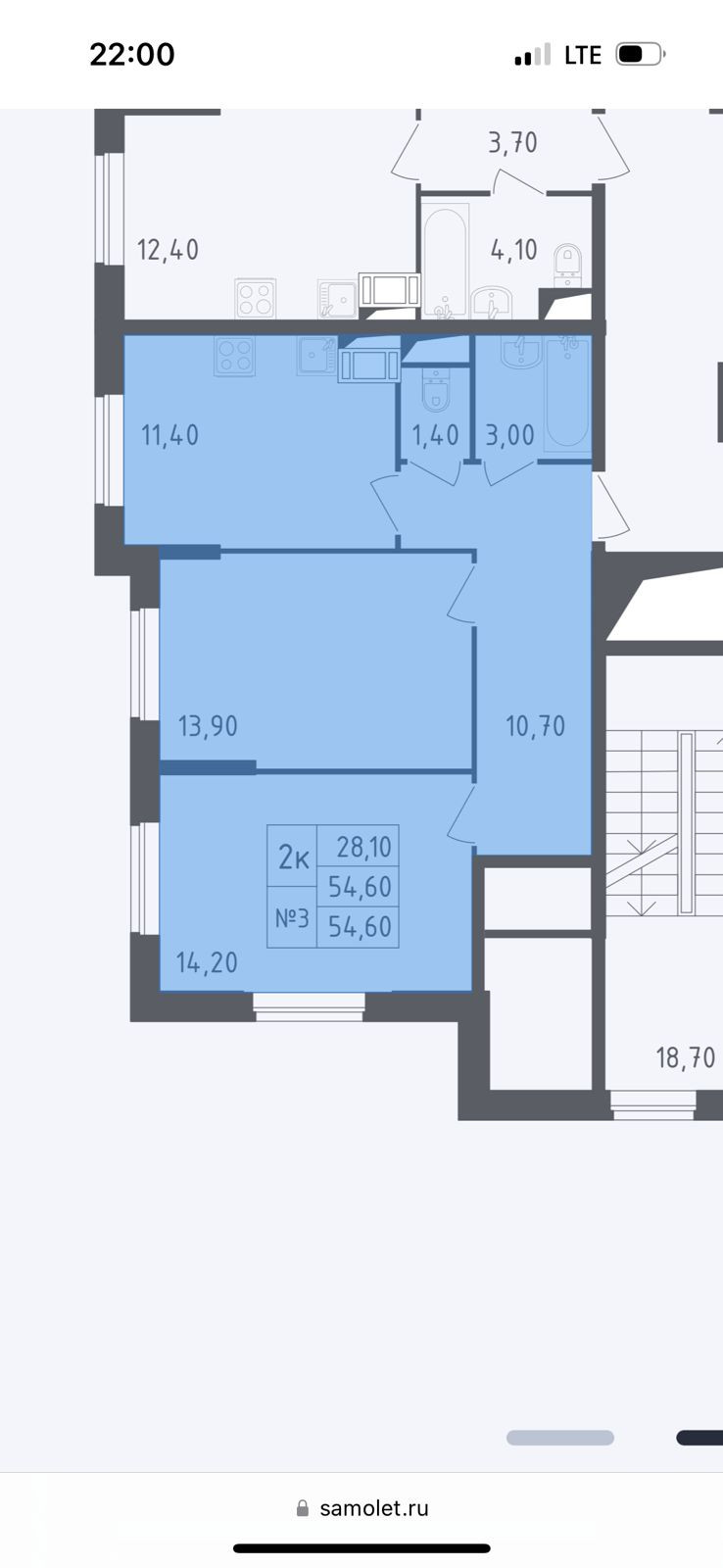Общая площадь 54.6 м2