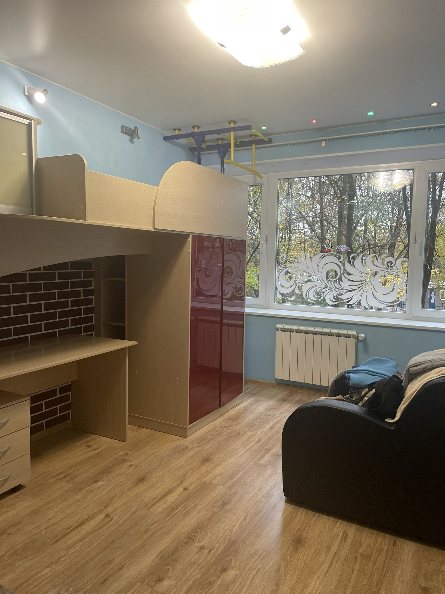 16,9 кв.м с выходом на большую застекленную лоджию, высота первого этажа на уровне второго + комната 12,5 кв.м. Вид из окон квартиры на обе стороны во двор, санузел раздельный, чистая сантехника, хорошая прихожая со встроенным шкафом купе, большая квадратная кухня 10 кв.м, встроенный кухонный гарнитур с бытовой техникой. Квартира после полной уборки клининговой компанией.