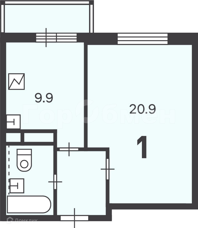 Жилая площадь 20.9 м2