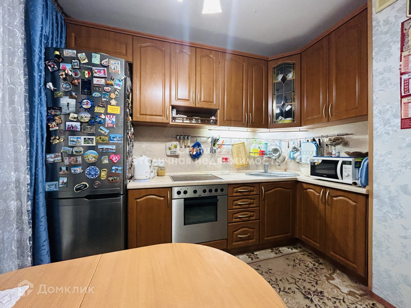 Кухня 8,5м2 - просторная и правильной формы, установлен качественный кухонный гарнитур со встроенной бытовой техникой, который останется нашим покупателям!