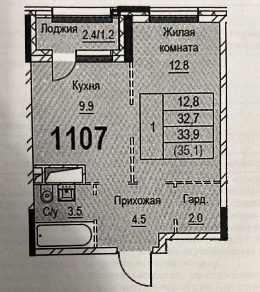 Общая площадь 33 м2