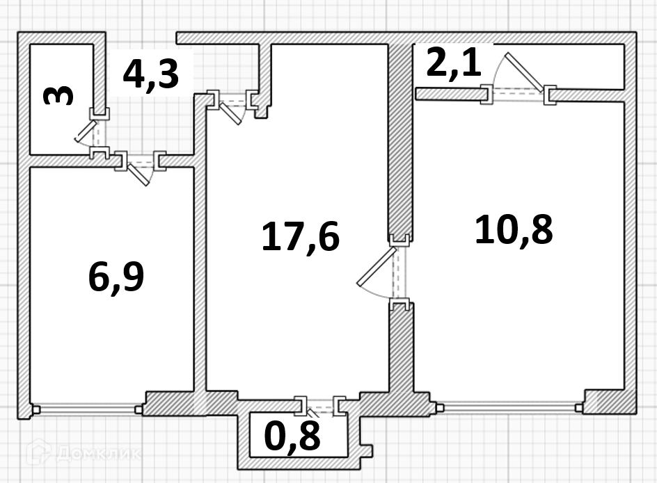 Жилая площадь 30.5 м2
