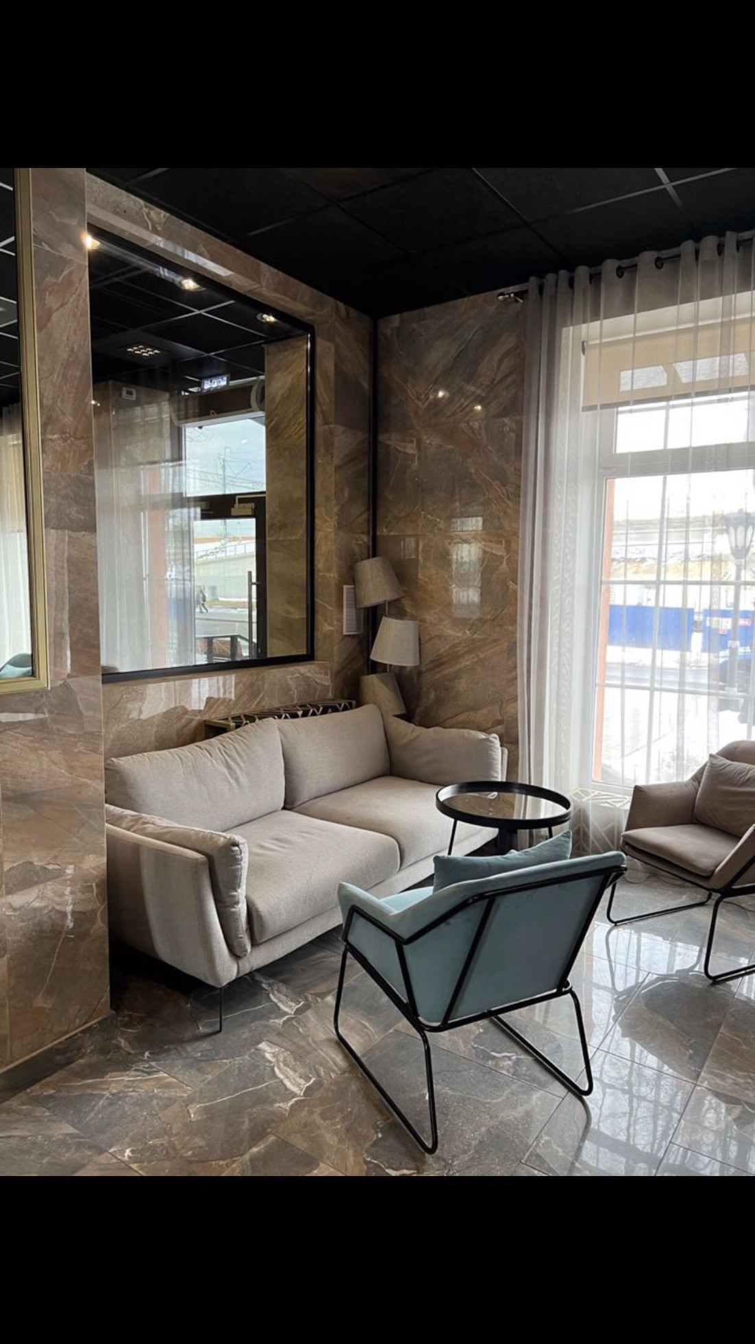 Стильная зона лобби для встреч и отдыха.