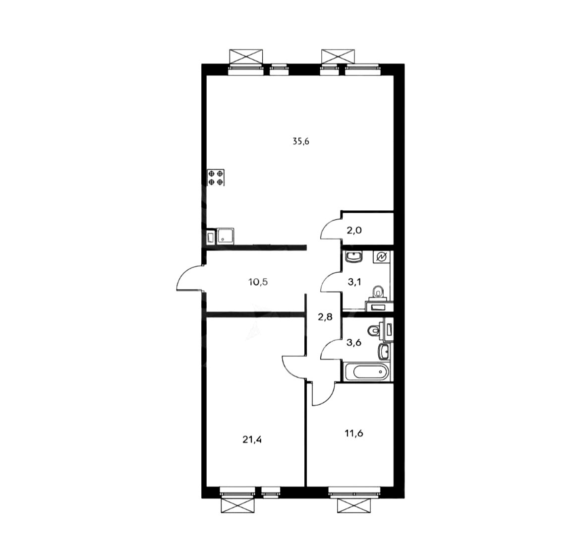 Евро 3х комнатная квартира со всей необходимой мебелью и техникой, БОЛЬШОЙ кухней-гостинной и КАМИНОМ - 35.6 кв.м., где удобно собирать всех гостей или друзей, проводя САМОЕ тёплое время! ПРОСТОРНЫЕ спальни - 21.4 и 11.6 кв.м, КОРИДОР - 10.5 кв.м., РАЗДЕЛЬНЫЕ 2 санузла - 3.6 кв.м и 3.1 кв.м. СВОЯ кладовая - 2.0 кв.м., где вы сможете спрятать все необходимое и сезонное. В этой квартире, где бы не находились - вам везде будет ПРОСТОРНО и УЮТНО! Планировка квартиры - продумано до мелочей!:)