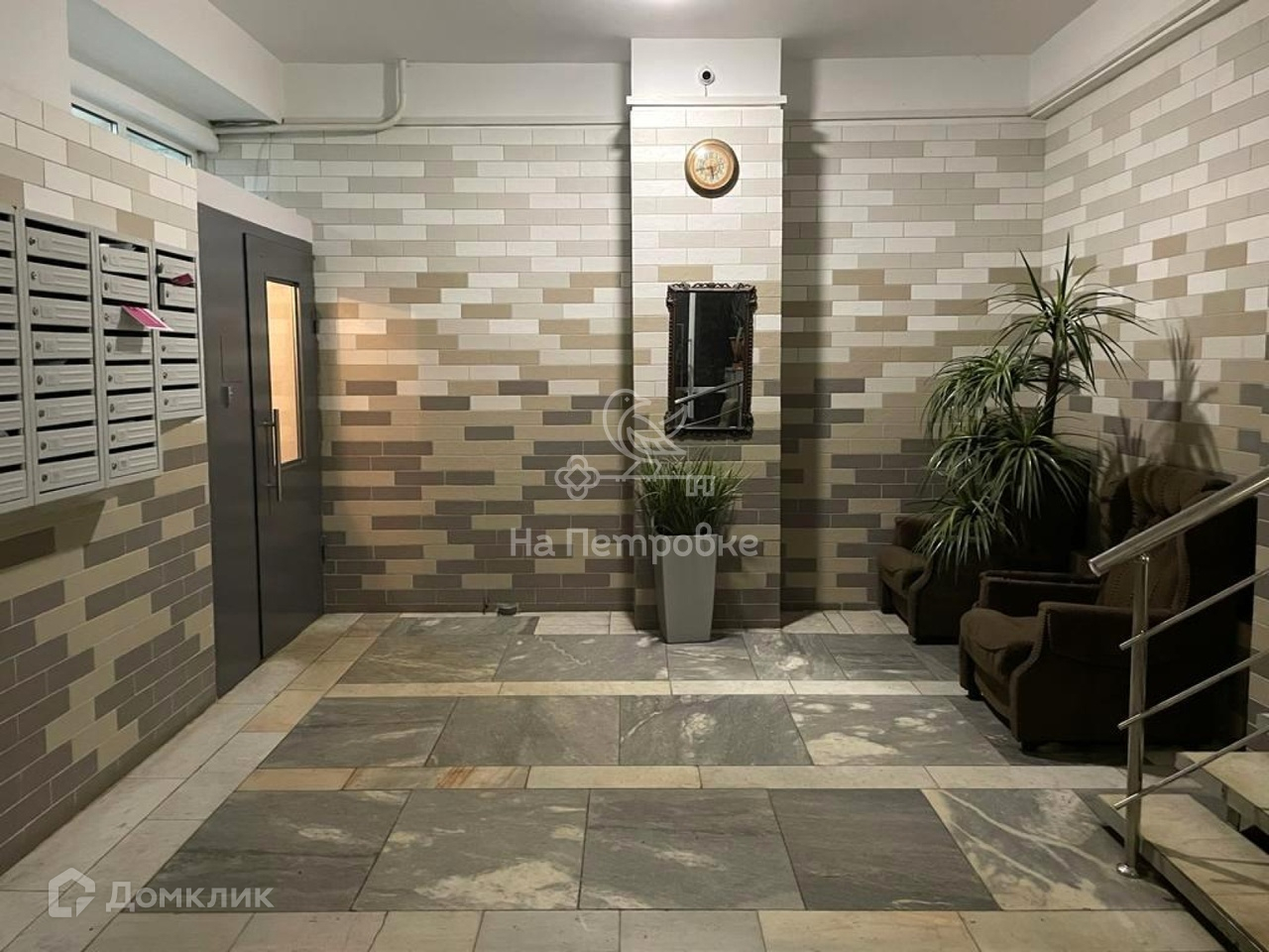 Входная группа поражает своим размахом! Это не тесный подъезд стандартной «хрущёвки», а практически современный просторный холл, отделанный натуральным камнем, с диванами, креслами, журнальными столиками, консьержной. Естественно, домофон и видеонаблюдение.