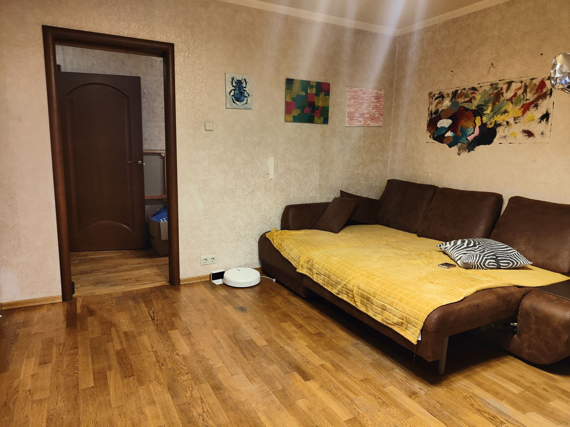 В квартире сделан косметический ремонт,на полу везде качественный паркет.Один взрослый собственник, без обременений, альтернатива на квартиру большей площади в соседнем районе.