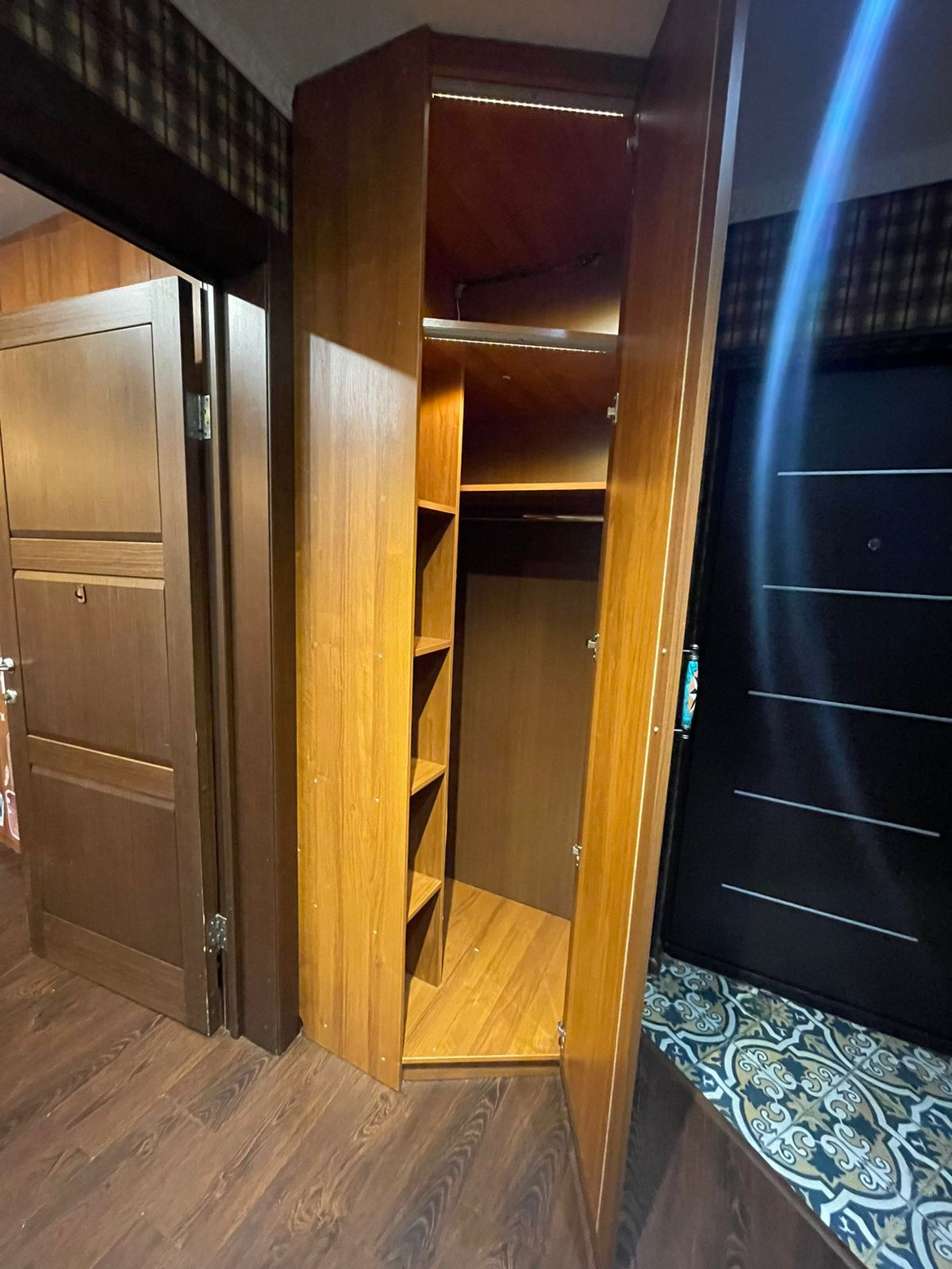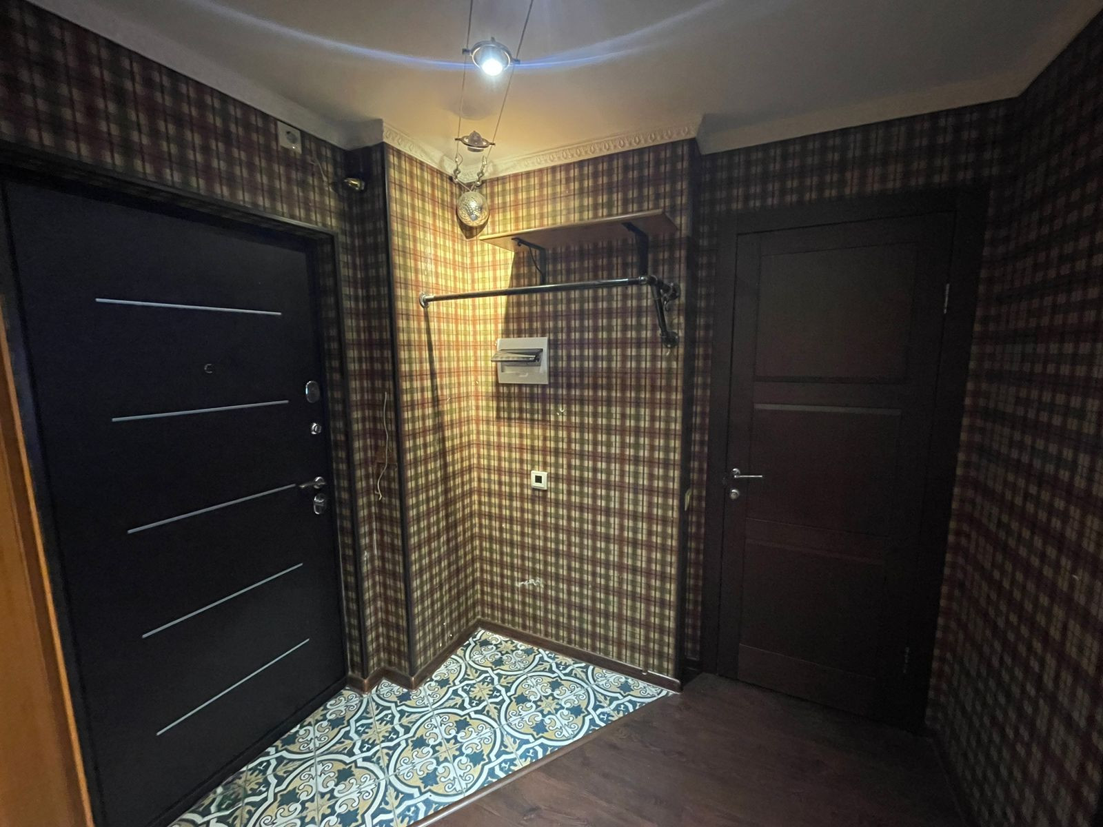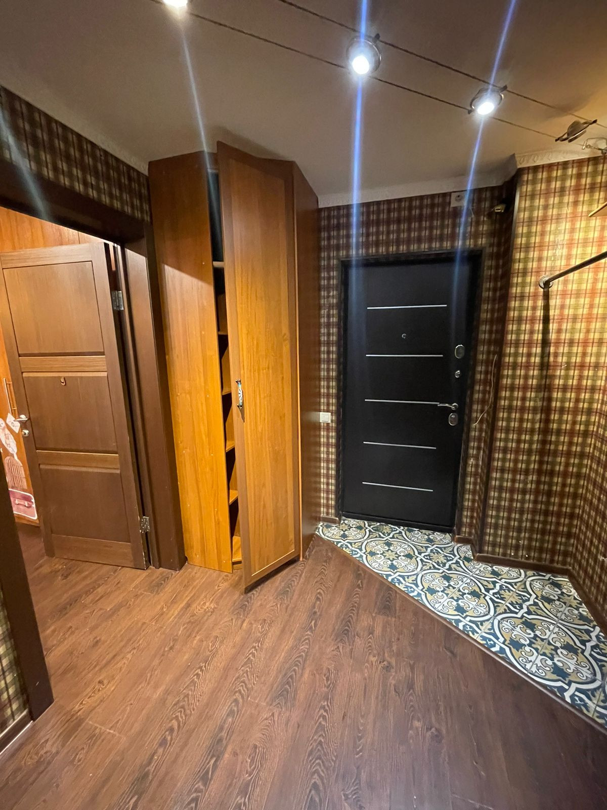 Хорошая железная дверь, общий тамбур с полками для вещей (соседи не пользуются, делали мы для себя).