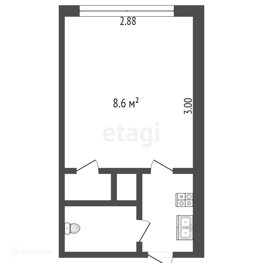 Общая площадь 12.3 м2
