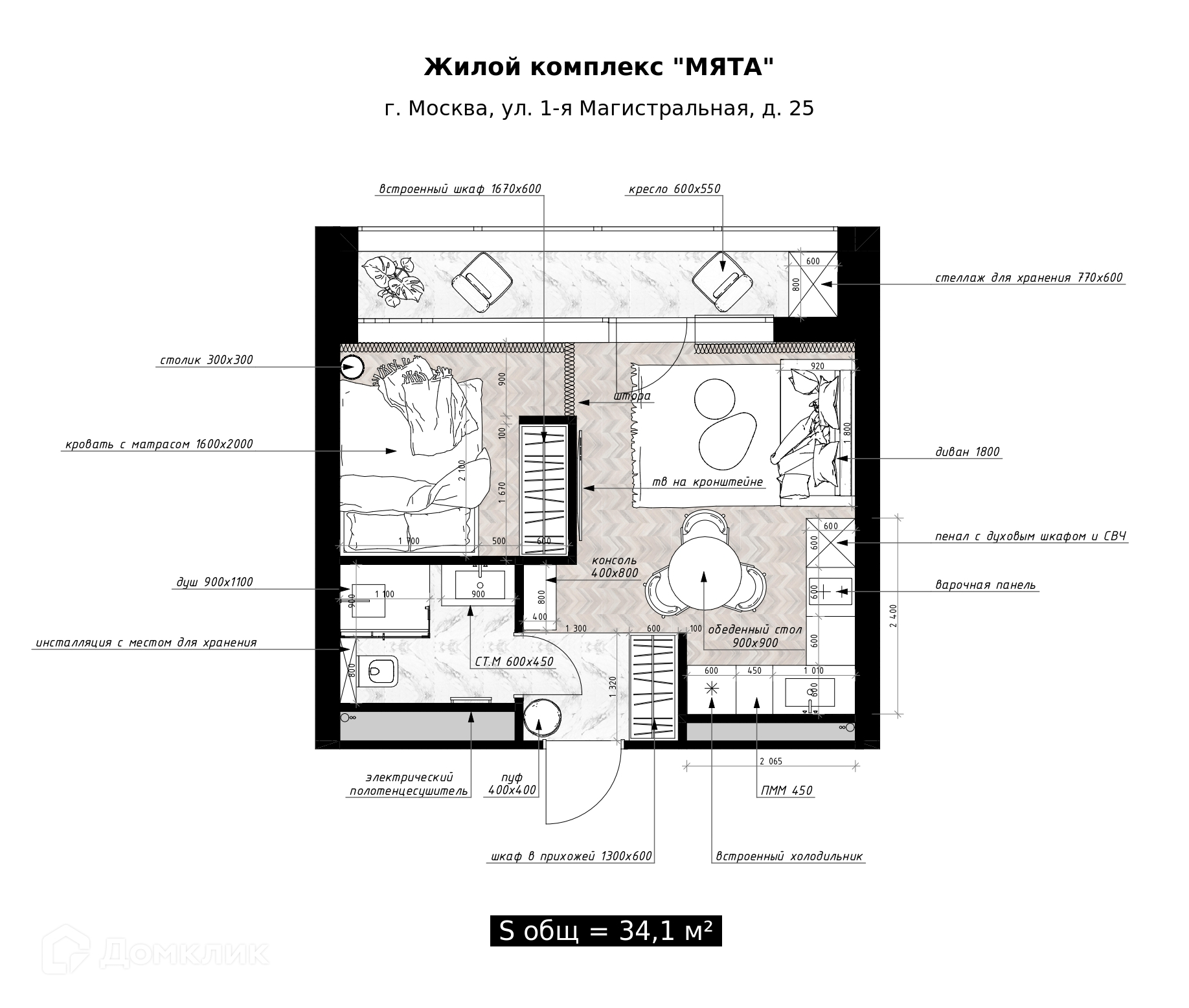 Планировка: кухня-гостиная, изолированная нишевая спальня, санузел с душевой кабиной, входная группа с местами хранения и открытая лаунж-терраса для приватных встреч.