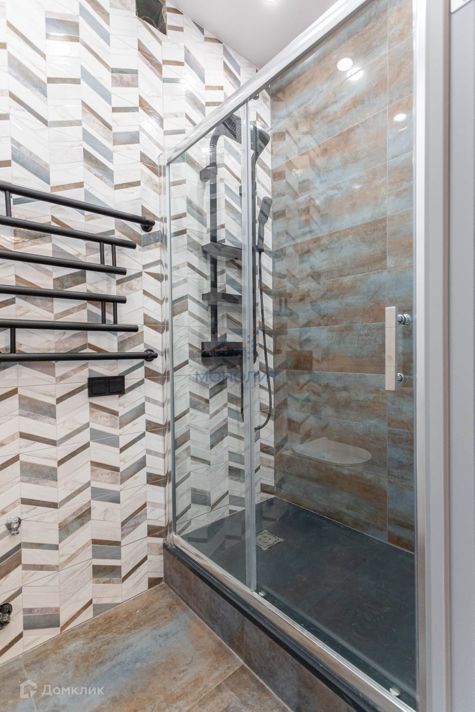 ДВА больших независимых САНУЗЛА с немецкой современной сантехникой, ванной из литьевого мрамора, душевой кабиной с поддоном из искусственного камня и стиральной машиной.