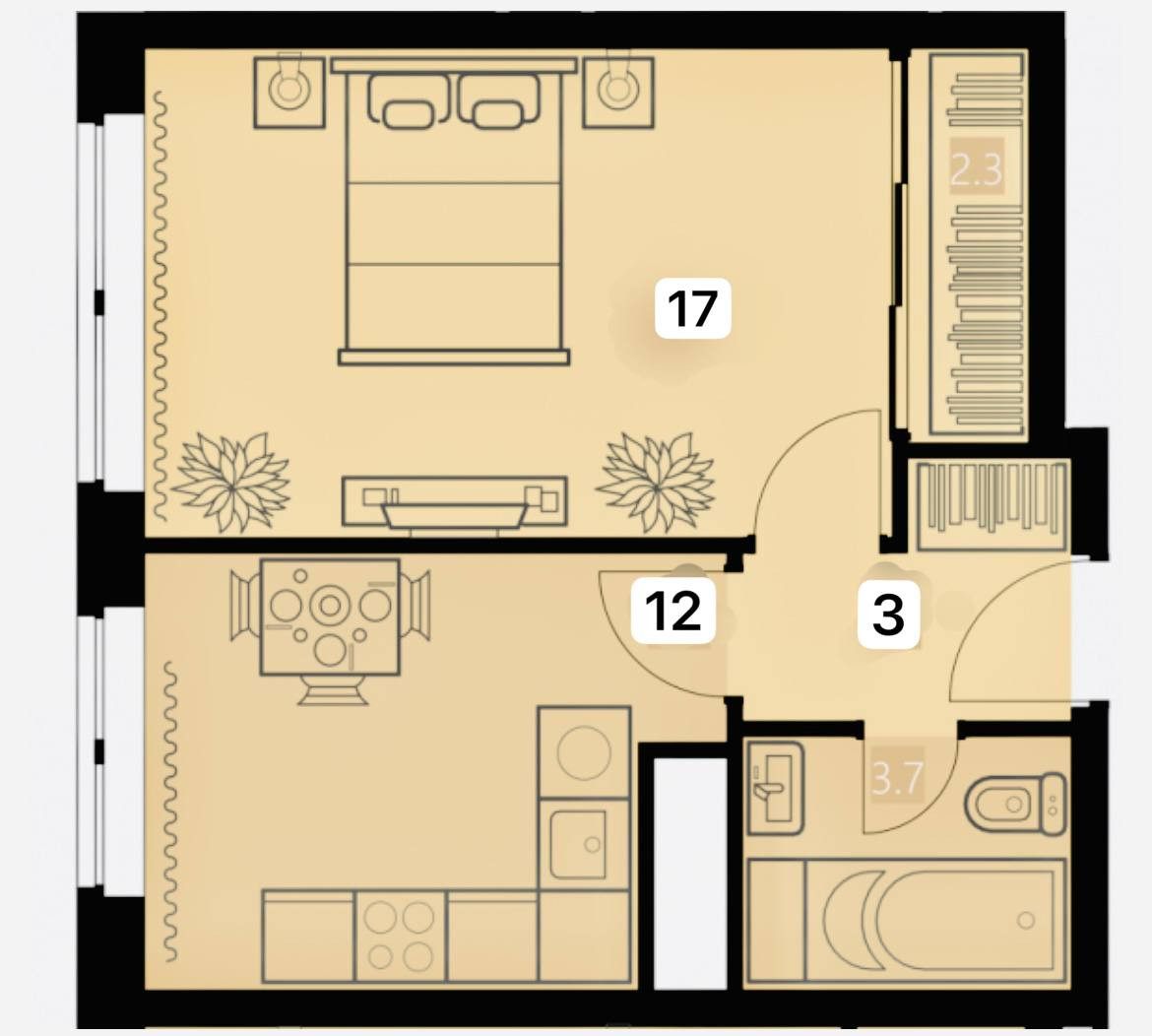Общая площадь 37.1 м2