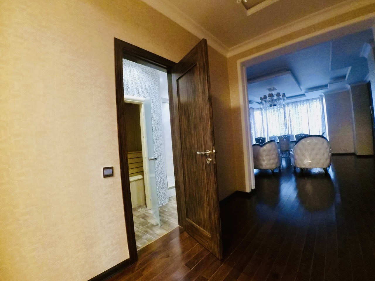 Пожалуй лучший вариант в жилом комплексе с отличными характеристиками и удачным расположением. В квартире панорамные окна и одно из главных преимуществ перед остальными объектами это просторные комнаты. Высокие потолки и панорамные окна (в двух спальнях по два окна) создают дополнительный простор большой квартиры. В квартире два санузла и сауна.