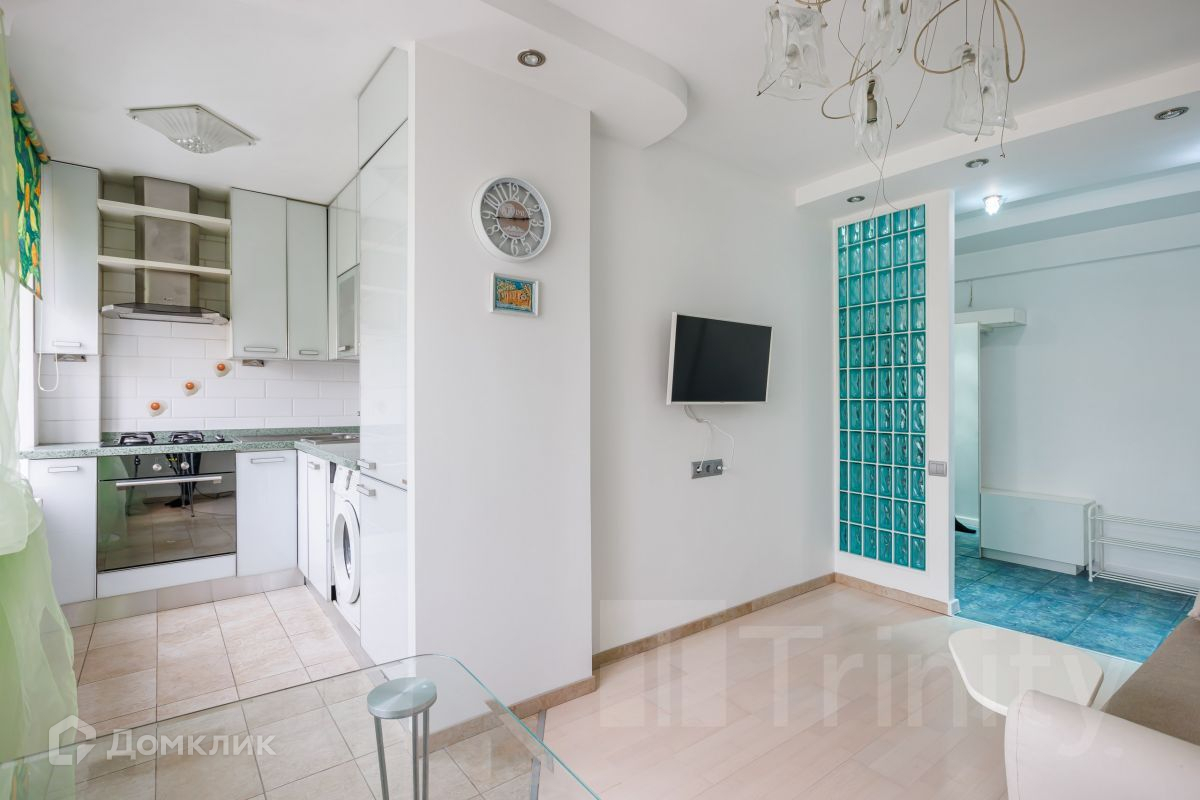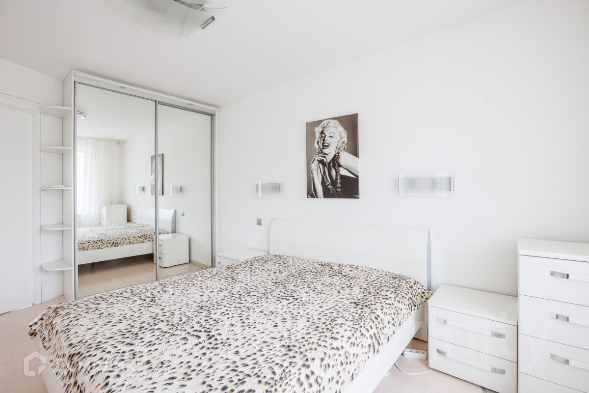 Квартира была переосмыслена: светлые тона, кухня объединена с комнатой, зеркало напротив кухни, все это значительно увеличивает пространство и наполняет его естественным светом. В чем вы убедитесь при просмотре.