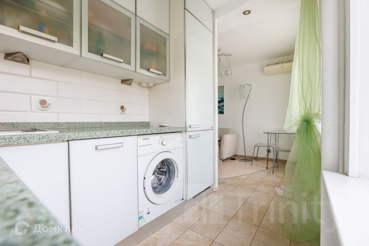 Квартира полностью меблирована и оснащена всей необходимой встроенной техникой. Кухня от итальянского бренда SCAVOLINI, двуспальная кровать, а также большой встроенный шкаф в одной из комнат – все это остается в квартире.