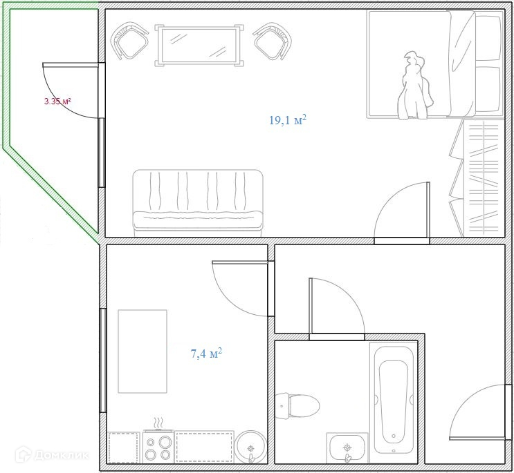 Жилая площадь: 19,1 м2