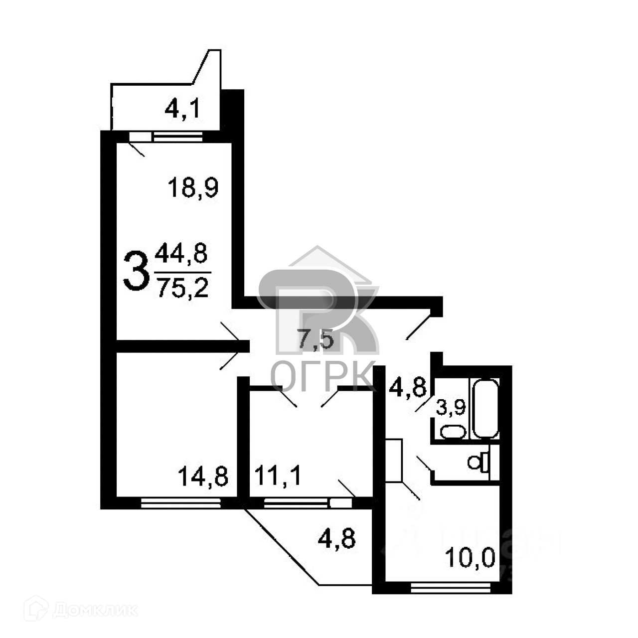 Общая площадь 74.4 м2