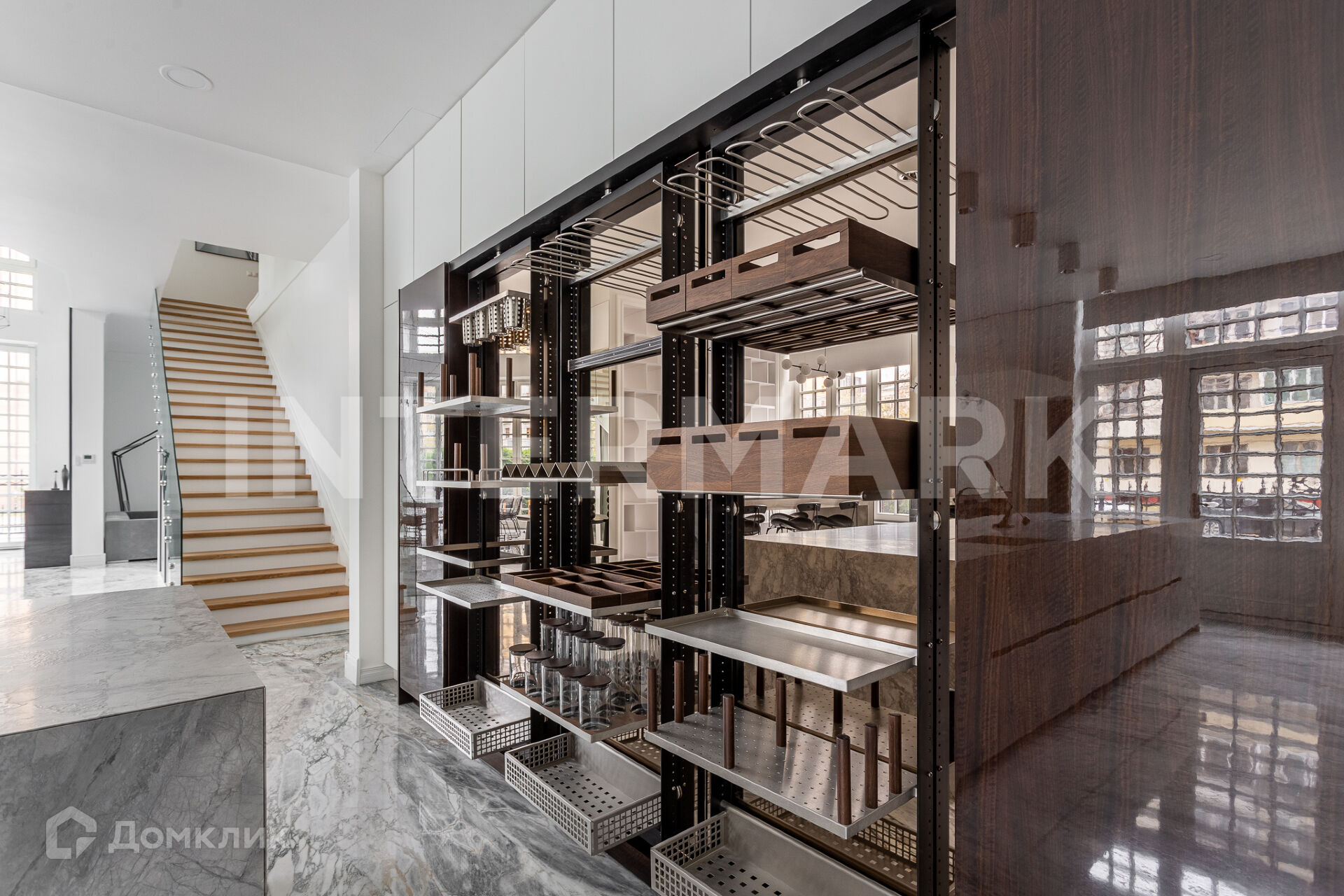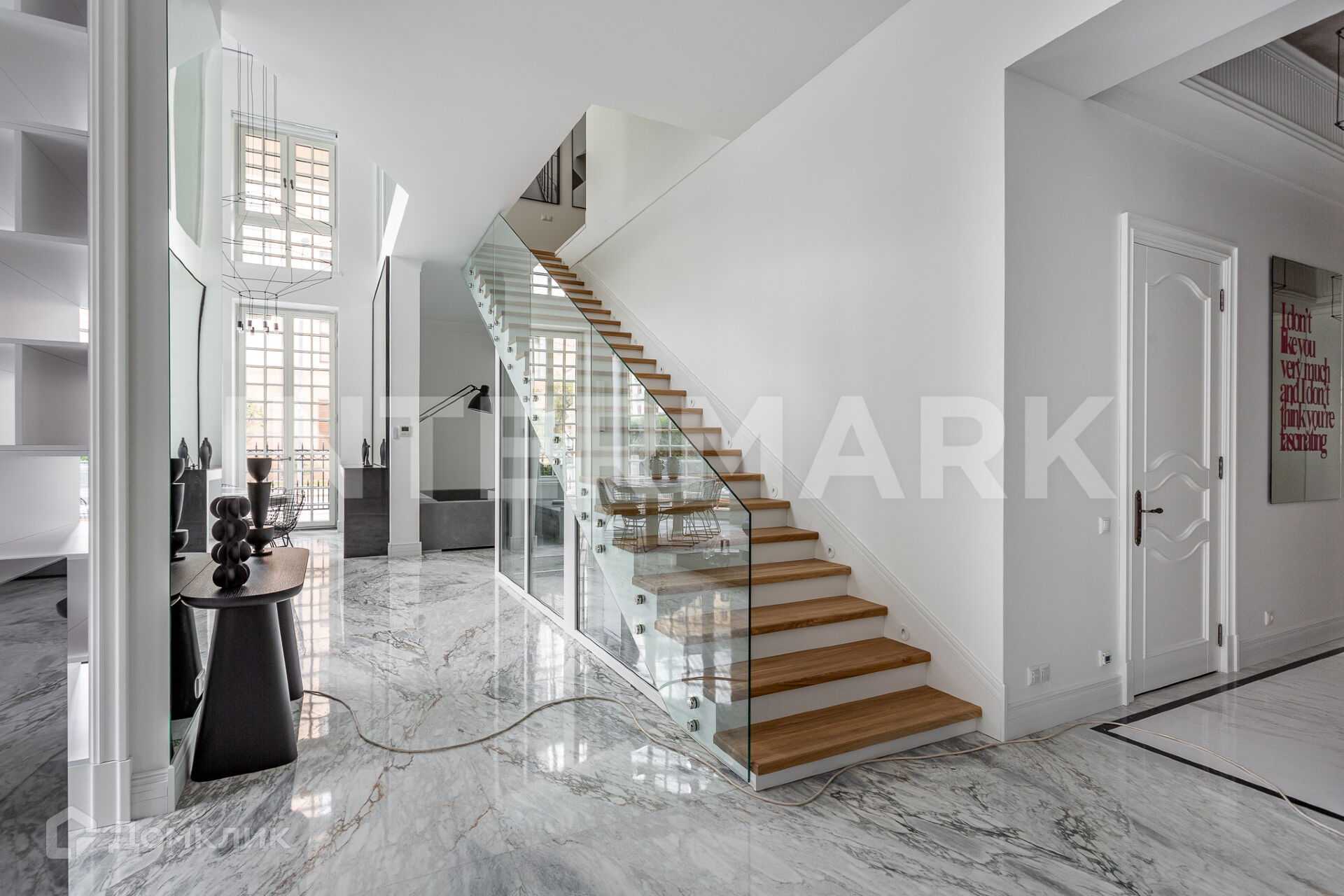 В таунхаусе выполнен высококачественный ремонт в современном стиле: мебель Baxter, B&B, Zaha Hadid, бытовая техника Gaggenau. На полу итальянский мрамор, штучный дубовый паркет. Предусмотрены приватное патио и 3 входа, в том числе с улицы. Шесть машиномест в подземном паркинге.