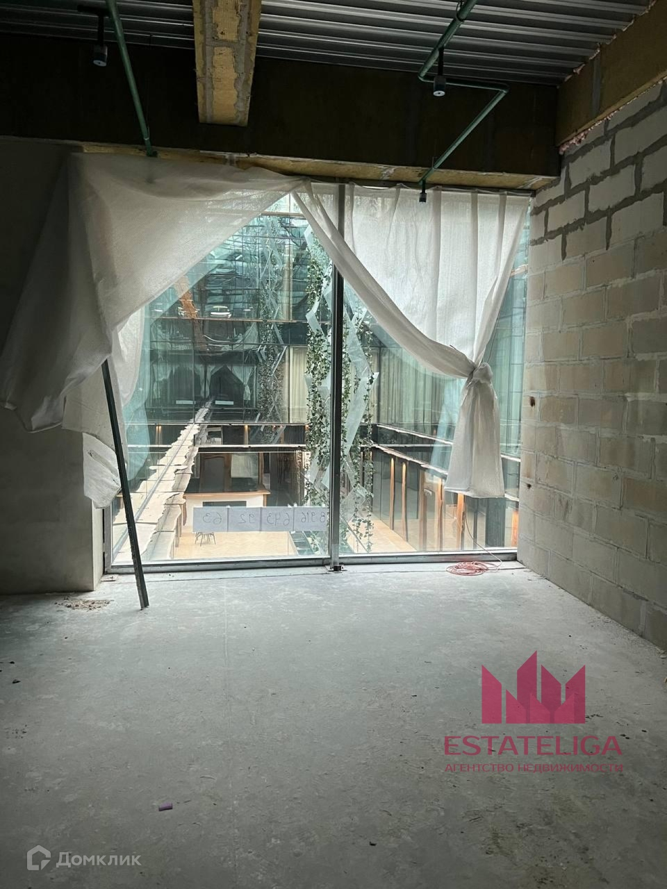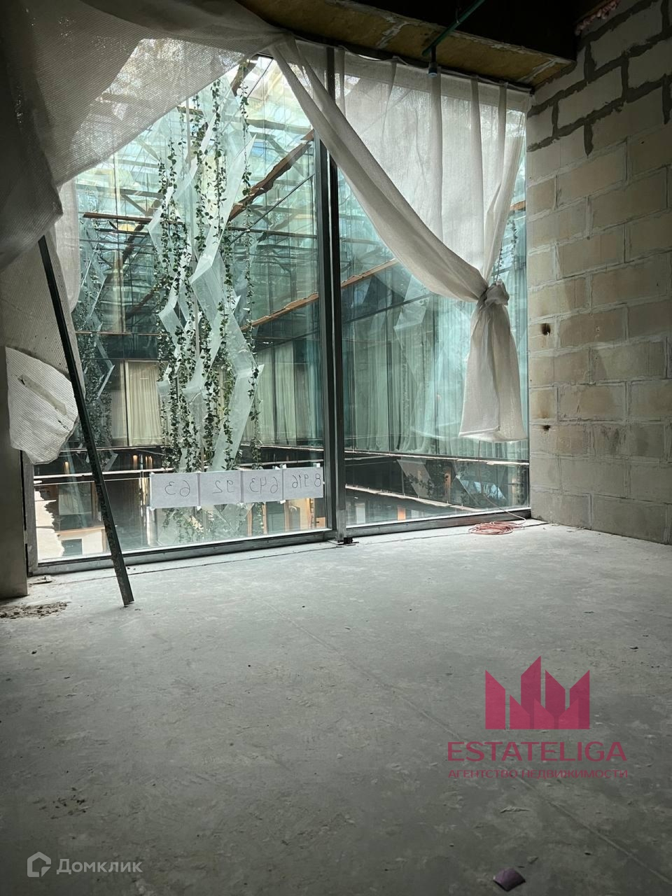 Апартамент в бетоне с уже готовым дизайн проектом. Два больших панорамных окна устремлены во внутренний двор, где располагается водопад 25 метров.