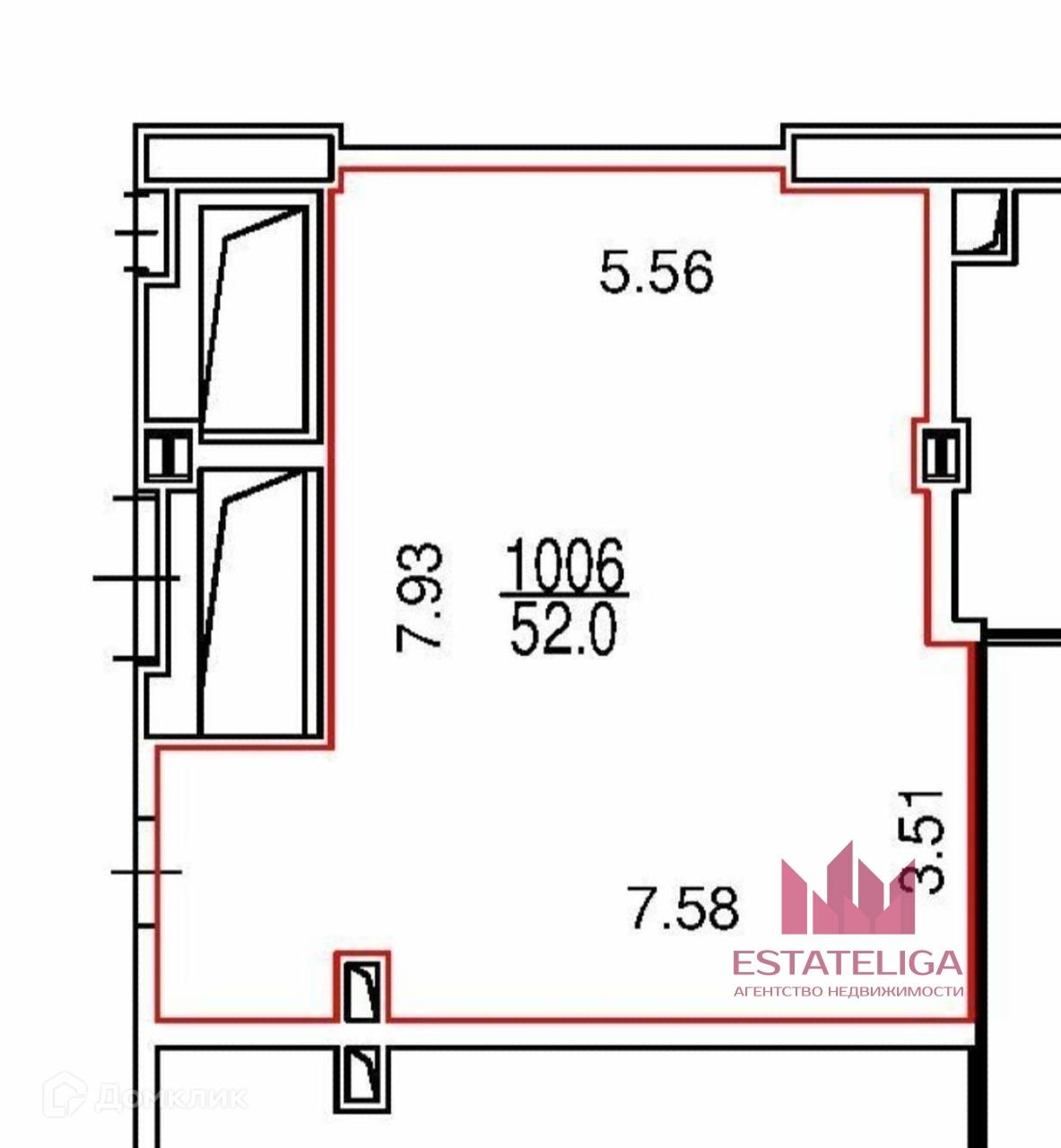 Общая площадь 52 м2