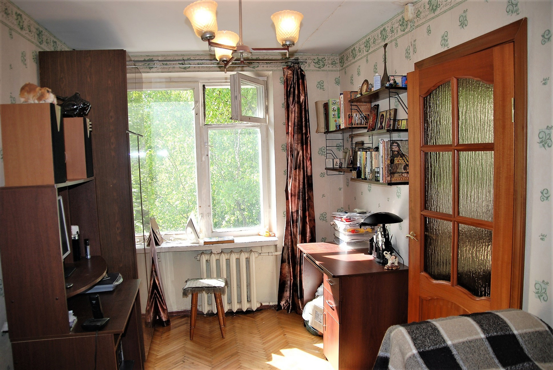 Состояние квартиры жилое, на полу паркет в отличном состоянии.