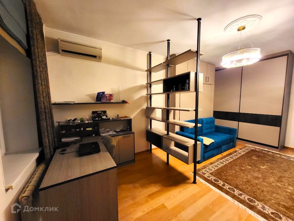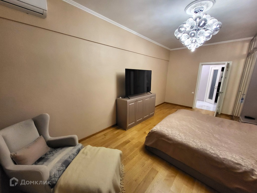 О КВАРТИРЕ: Просторная квартира площадью 110  м2, высокие потолки 3 м2. Зал площадью 24.1 м2, с качественной эргономичной мебелью, и зонированным рабочим пространством, из зала выход на балкон с красивым видом из окна. Спальная комната площадью 21.9 м2 с большой кроватью, выполненная в спокойных тонах, позволит вам полноценно отдохнуть после рабочего дня.  Гостиная площадью 21.5 м2, в которой можно как проводить время с семьей, так и собираться компанией. Во всех комнатах установлены кондиционеры. Просторный совмещенный санузел. Кухня площадью 10.1 м2 со встроенной кухней и новой высококачественной бытовой техникой. Ремонт в квартире делали недавно, во время ремонта использовали только высококачественные материалы.
