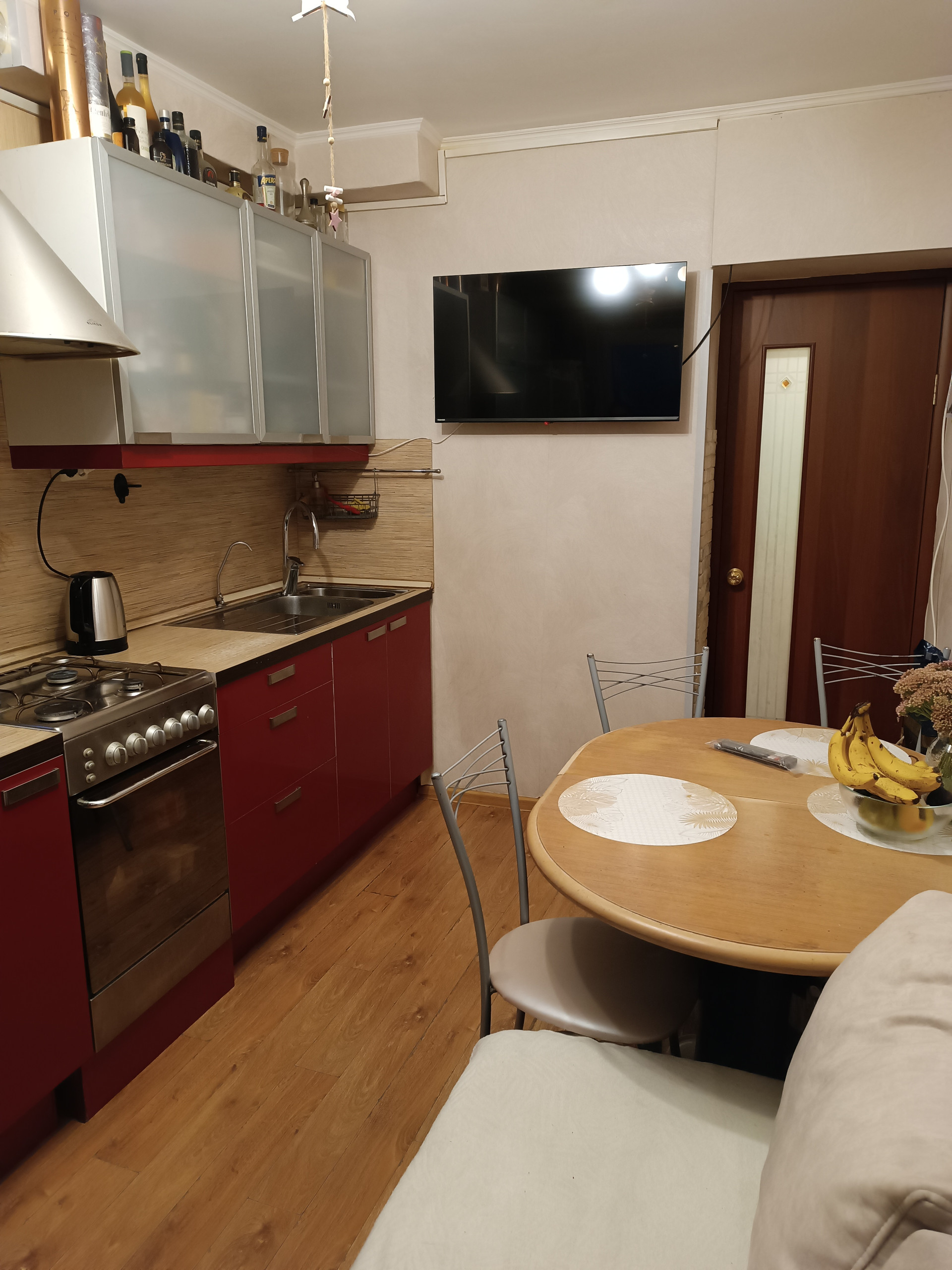 Однокомнатная квартира с большой кухней и застекленным балконом. Состояние хорошее, жилое.