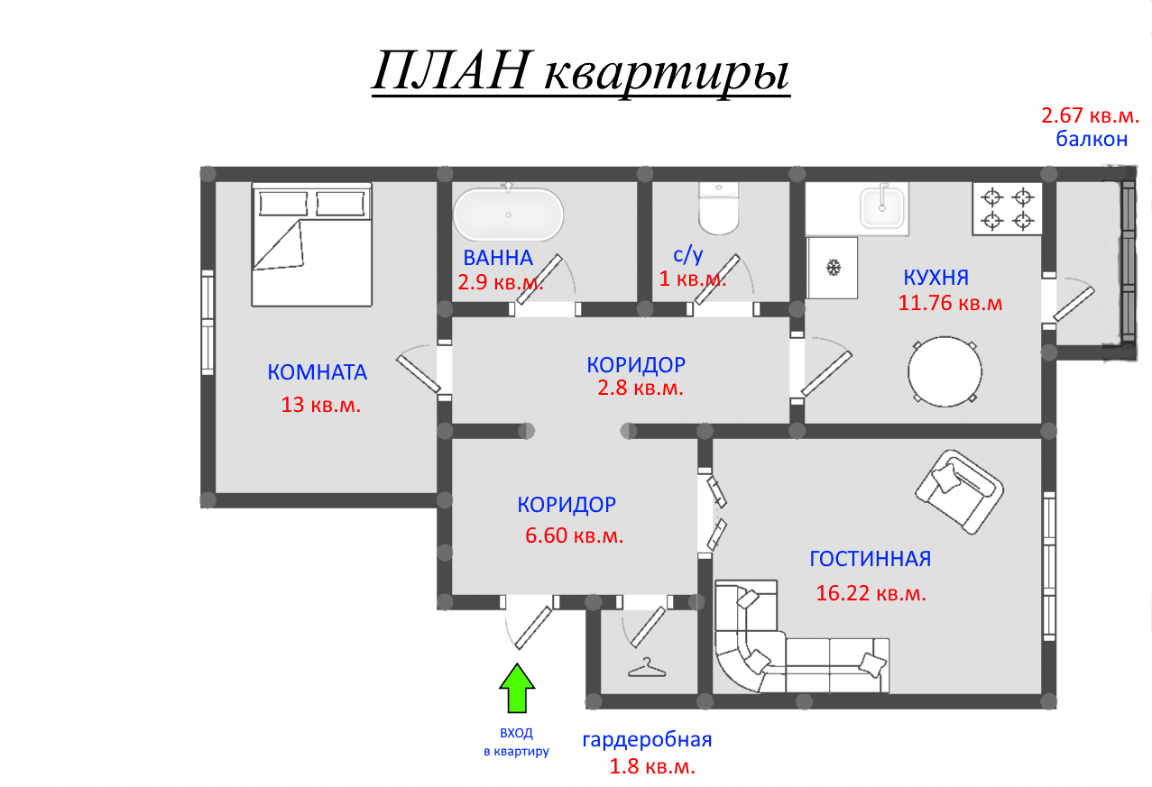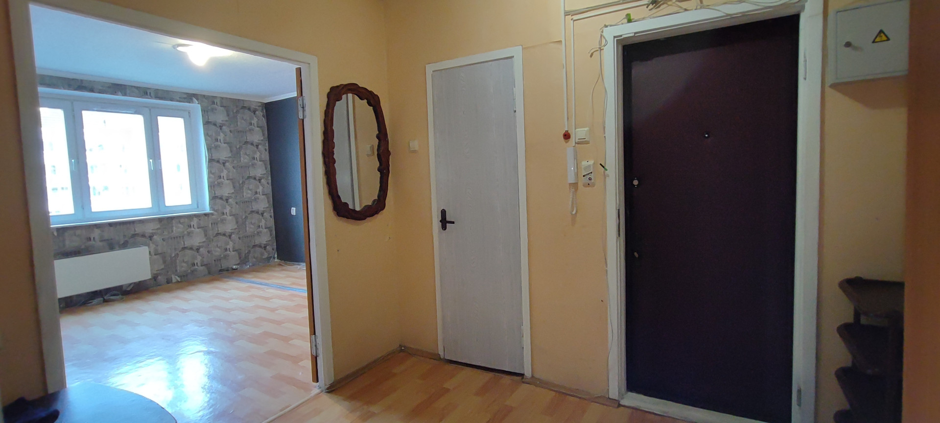 Квартира в состоянии пригодном для жилья, вместительная гардеробная, сан/узел раздельный, установлены приборы учета.