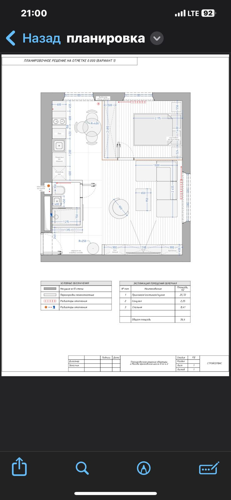 Общая площадь 37 м2