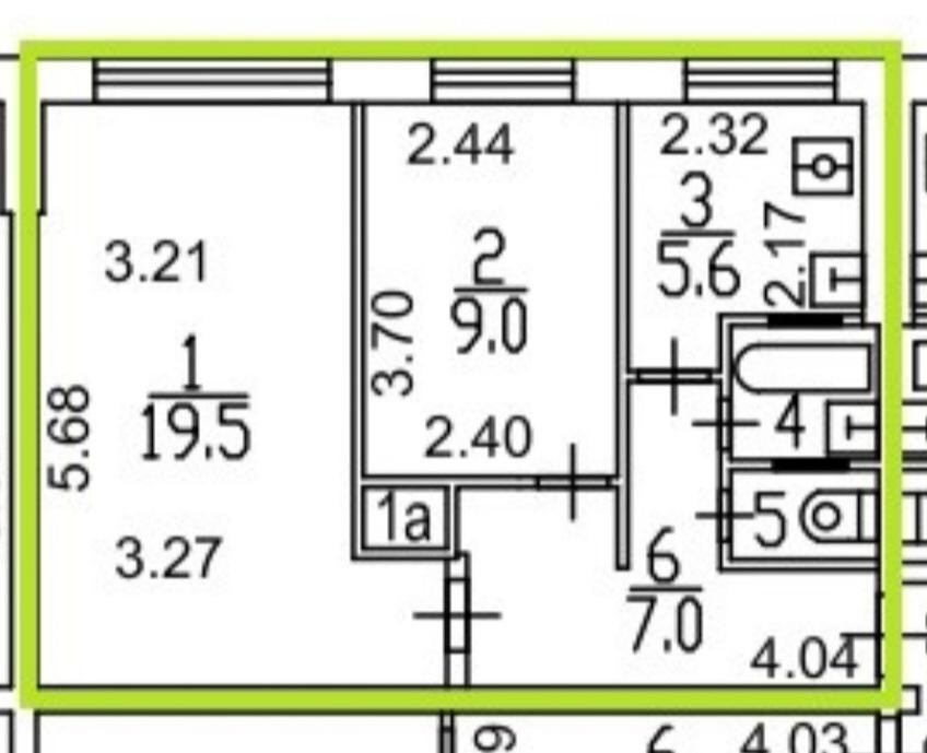 Площадь кухни 5.6 м2