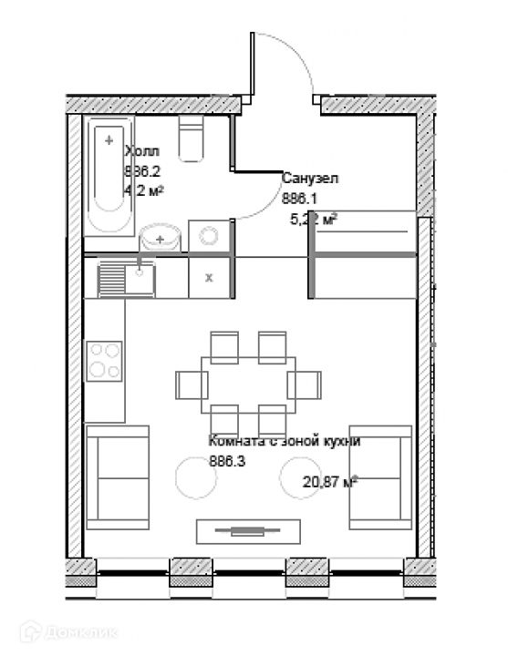 Общая площадь 30.3 м2