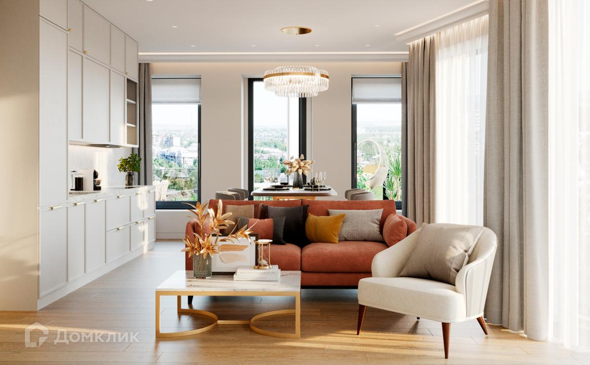 Пощади планировок от студий 20 кв. метров до просторных трехкомнатных апартаментов площадью более 100 кв. метров. Благодаря высоким потолкам и большим панорамным окнам апартаменты наполнены светом и воздухом.