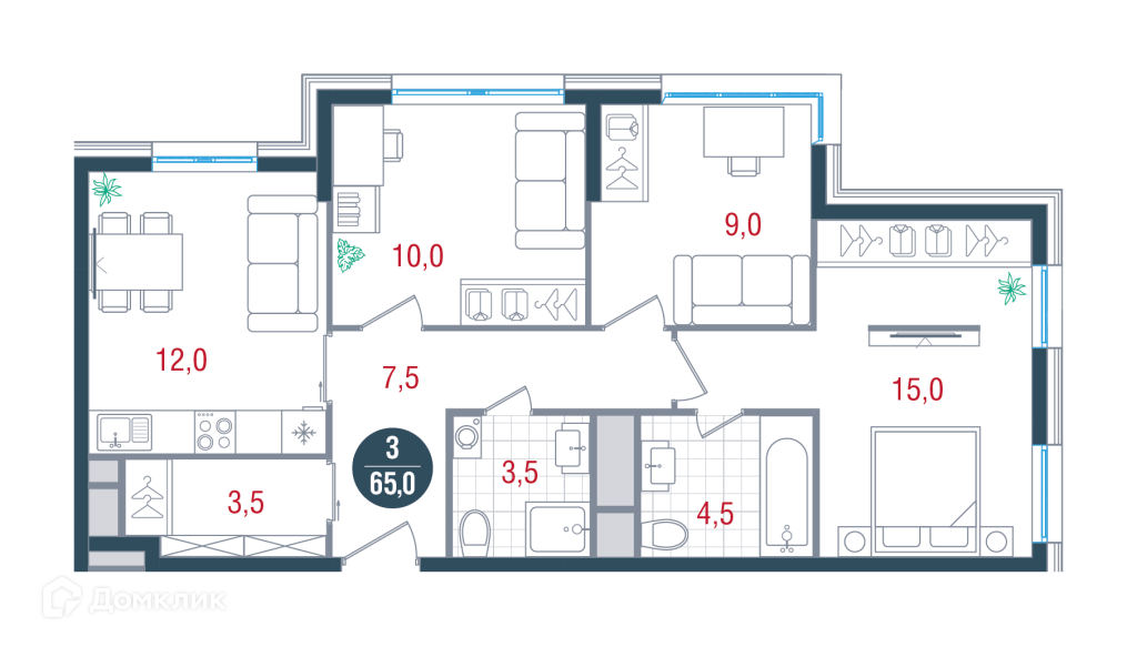 Общая площадь 65 м2