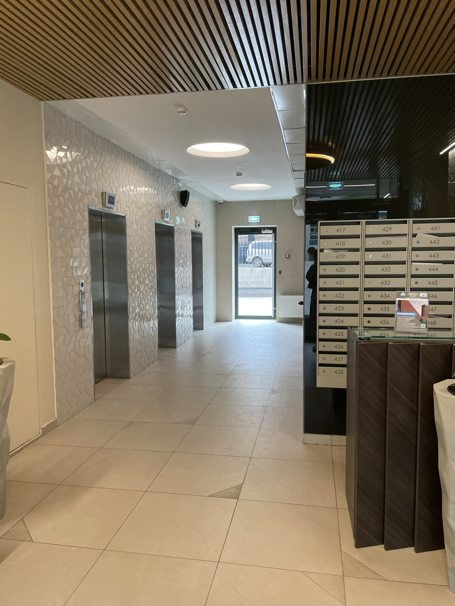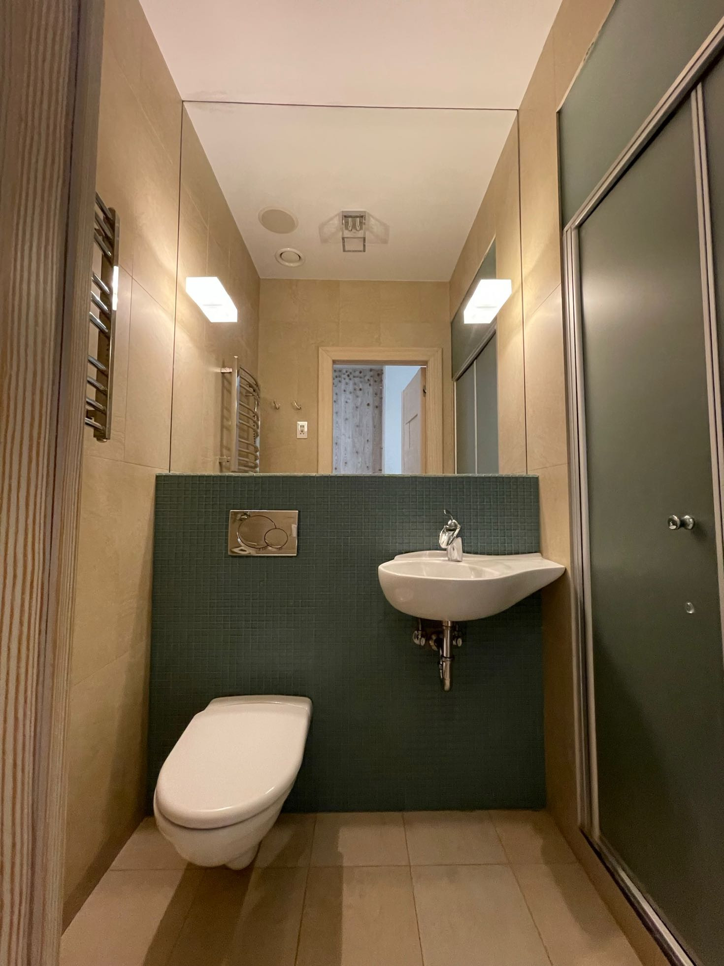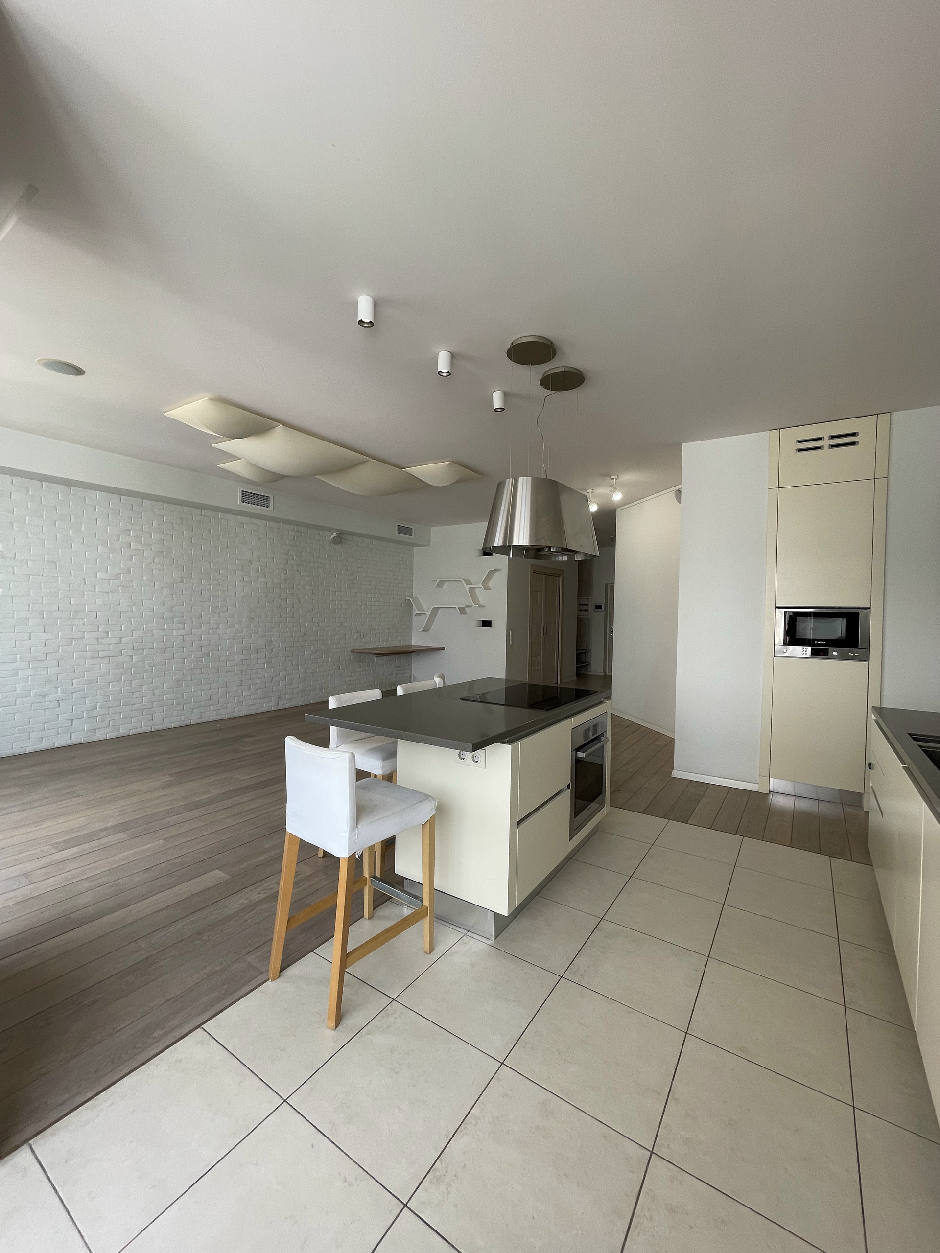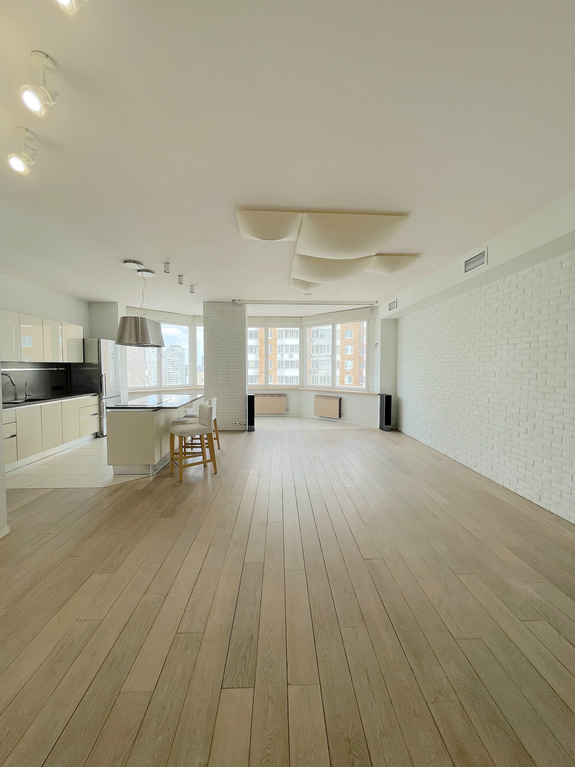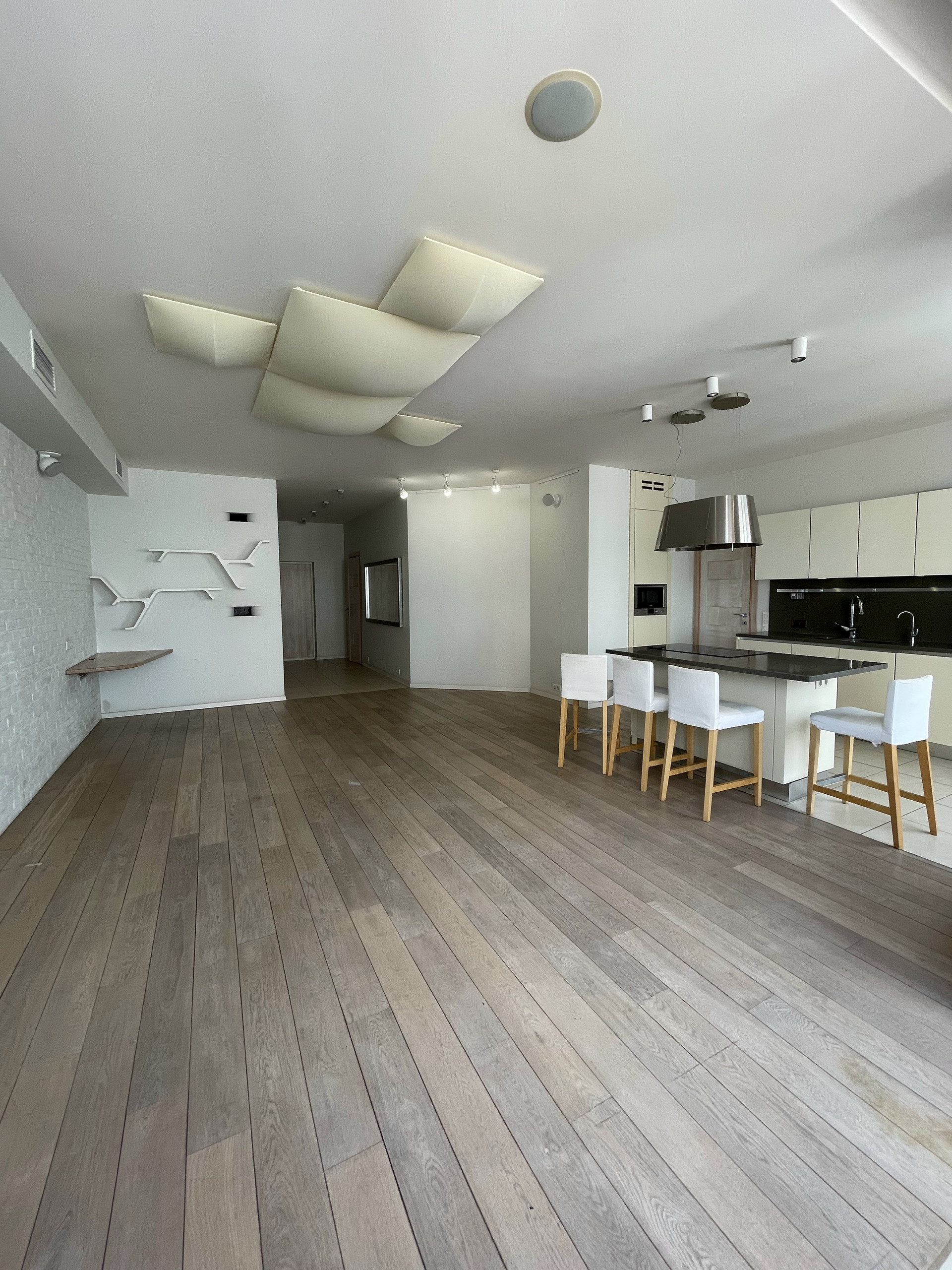 Обе зоны оснащены кондиционерами, в санузлах и на кухне теплые полы, для вашего удобства во время ежегодного отключения горячей воды в квартире есть бойлер. Во всех помещениях организована многоканальная музыкальная система мультирум с центральным управлением. Гостиная легко превращается в домашний кинотеатр благодаря встроенному в потолок экрану для проектора и плотным римским шторам.