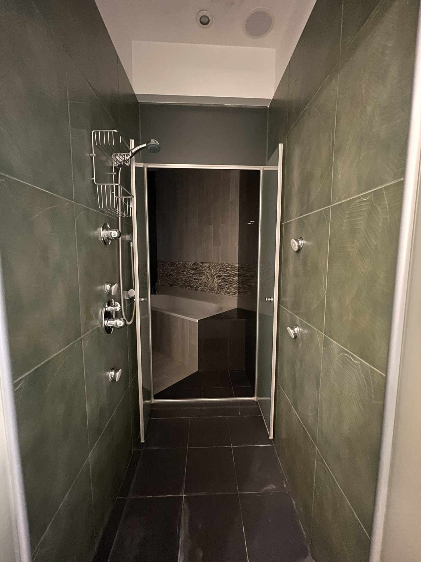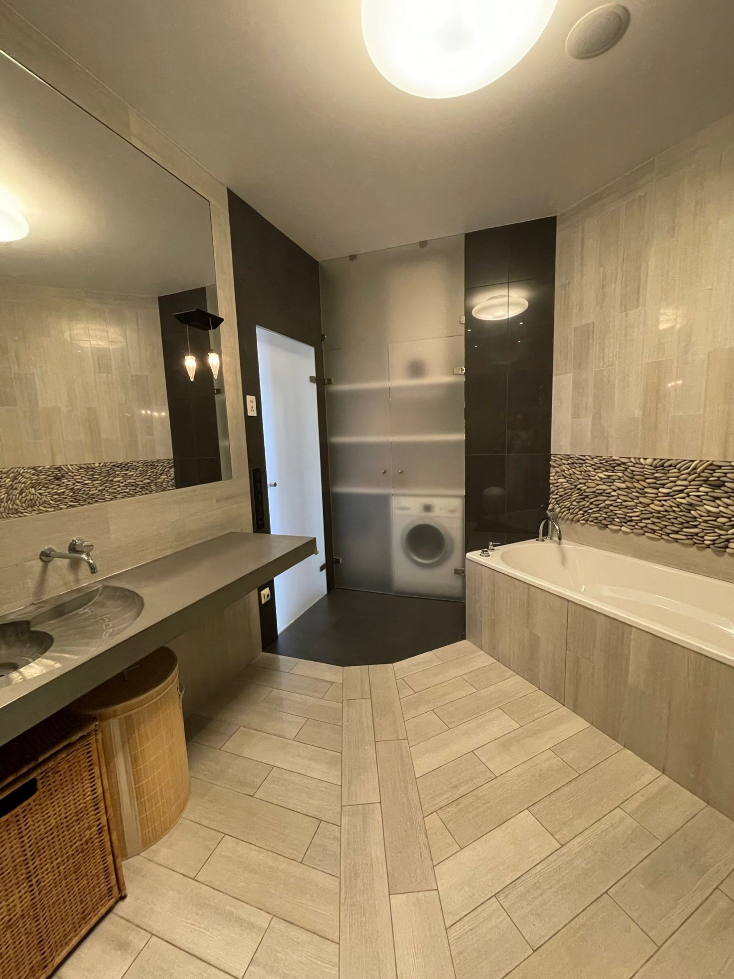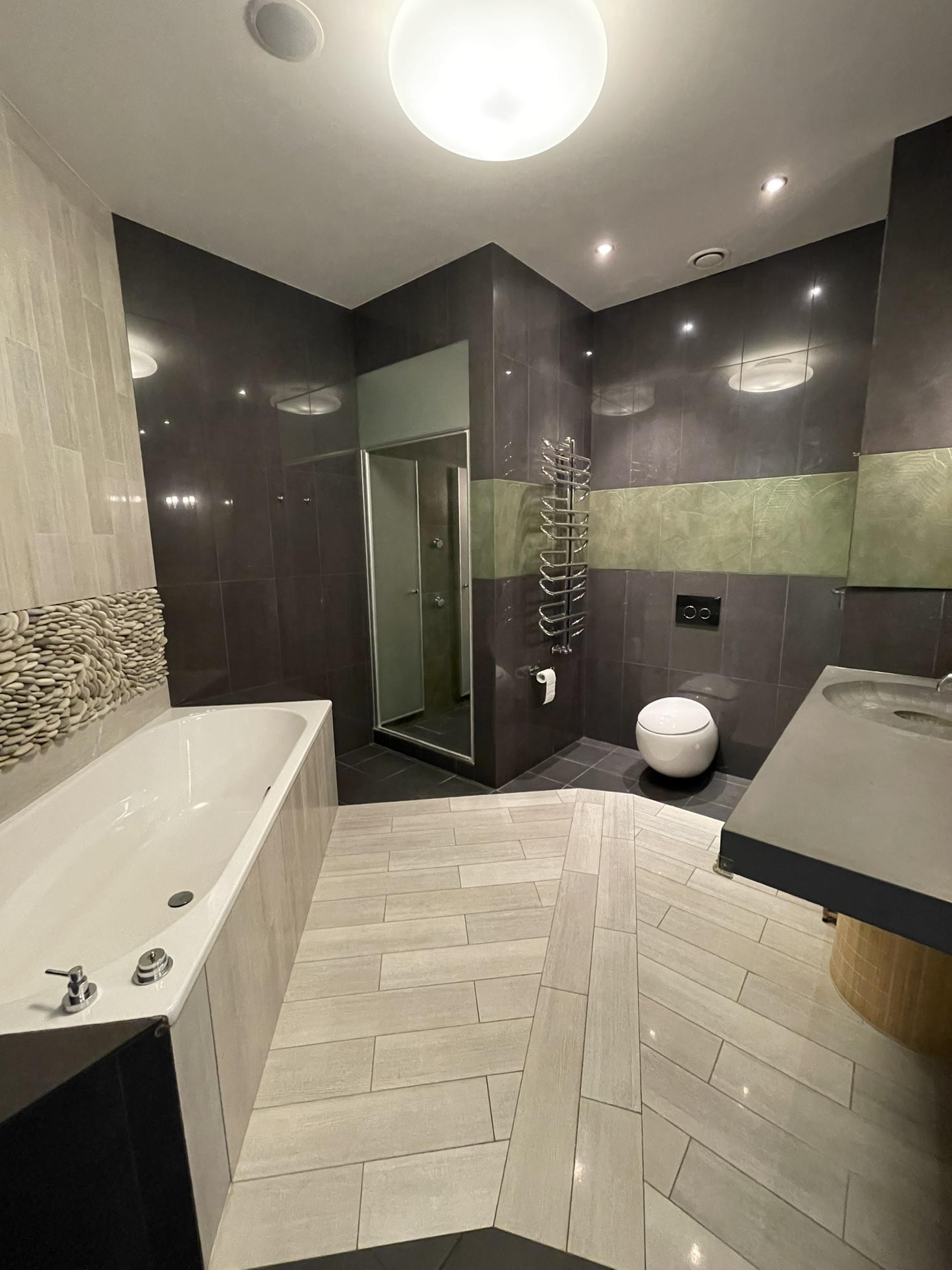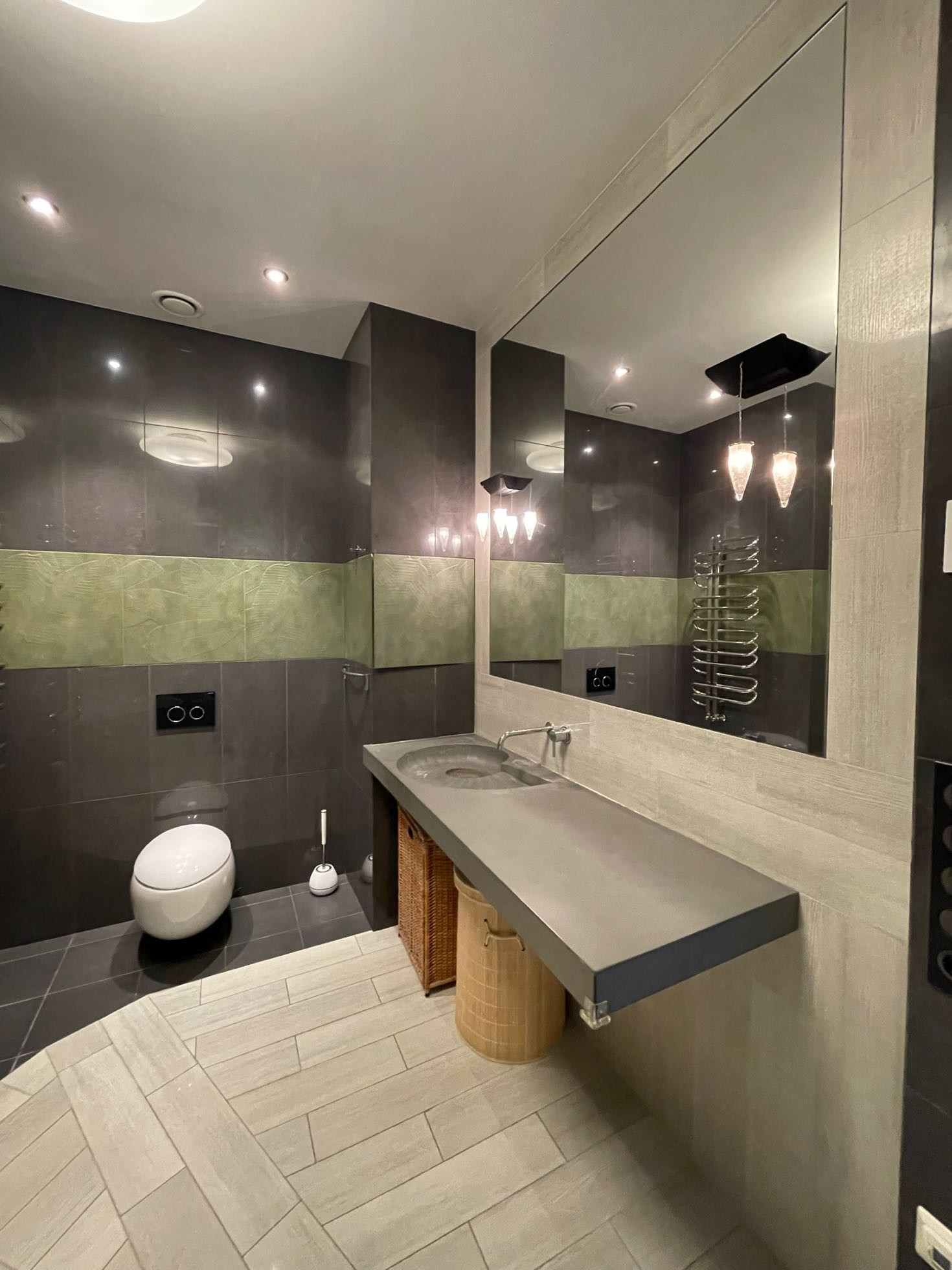 Обе зоны оснащены кондиционерами, в санузлах и на кухне теплые полы, для вашего удобства во время ежегодного отключения горячей воды в квартире есть бойлер. Во всех помещениях организована многоканальная музыкальная система мультирум с центральным управлением. Гостиная легко превращается в домашний кинотеатр благодаря встроенному в потолок экрану для проектора и плотным римским шторам.