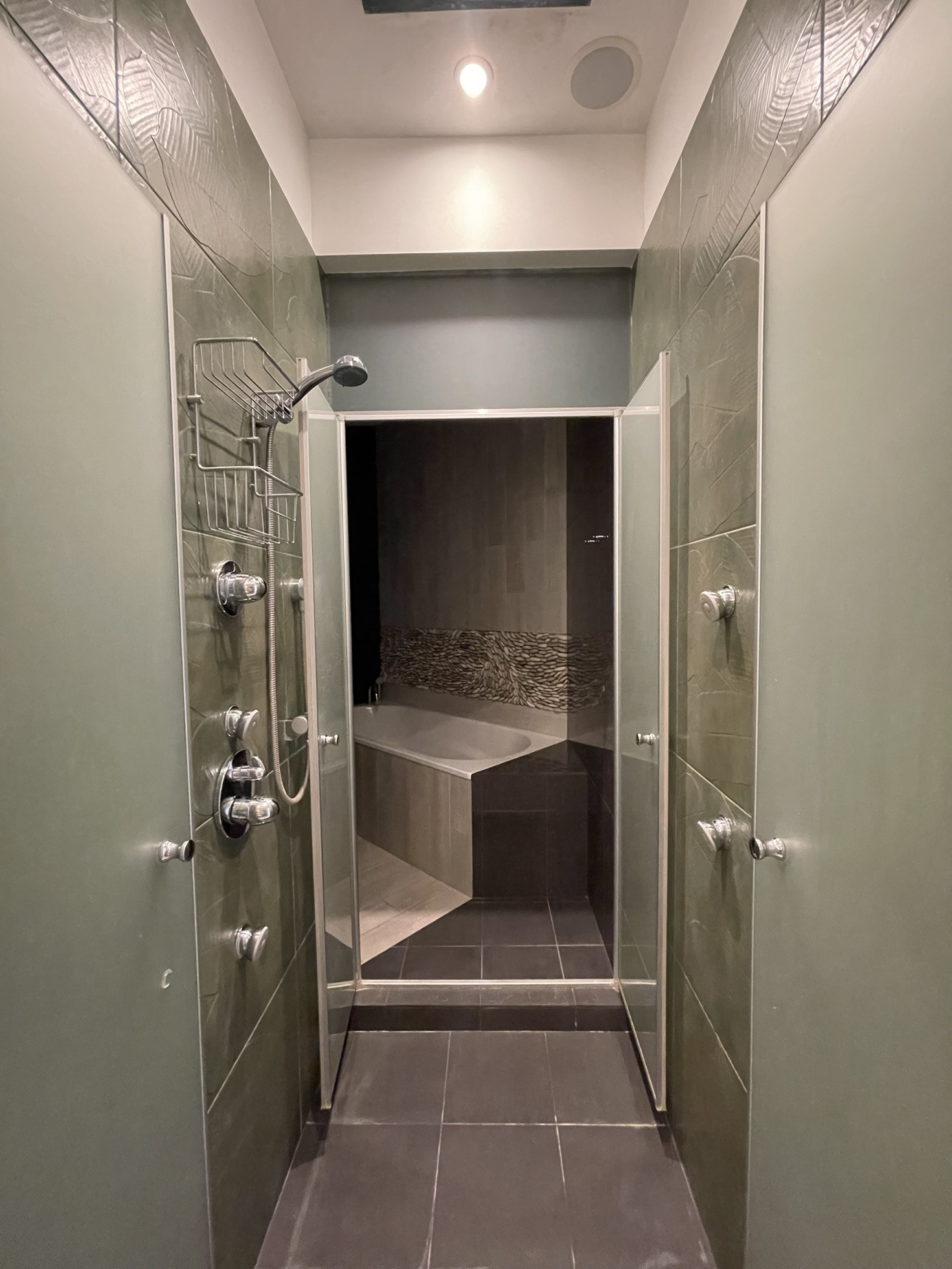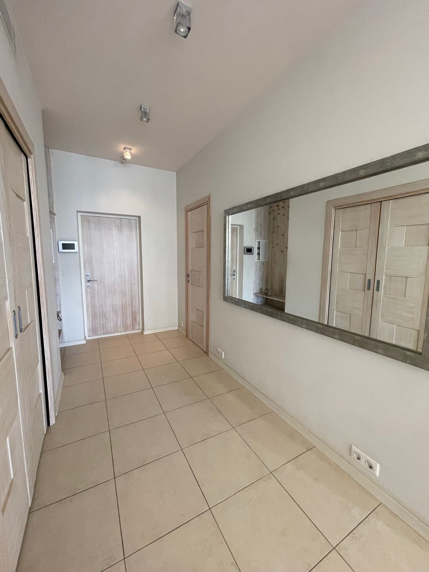 Общая зона включает прихожую, переходящую в очень просторную и светлую гостиную с открытой кухней, здесь также расположен гостевой санузел и вместительная гардеробная-кладовая. Приватная часть включает спальню с en suite гардеробной и большой ванной комнатой. Душевая с тропическим ливнем может использоваться как из хозяйской ванной комнаты, так и из гостевого санузла.