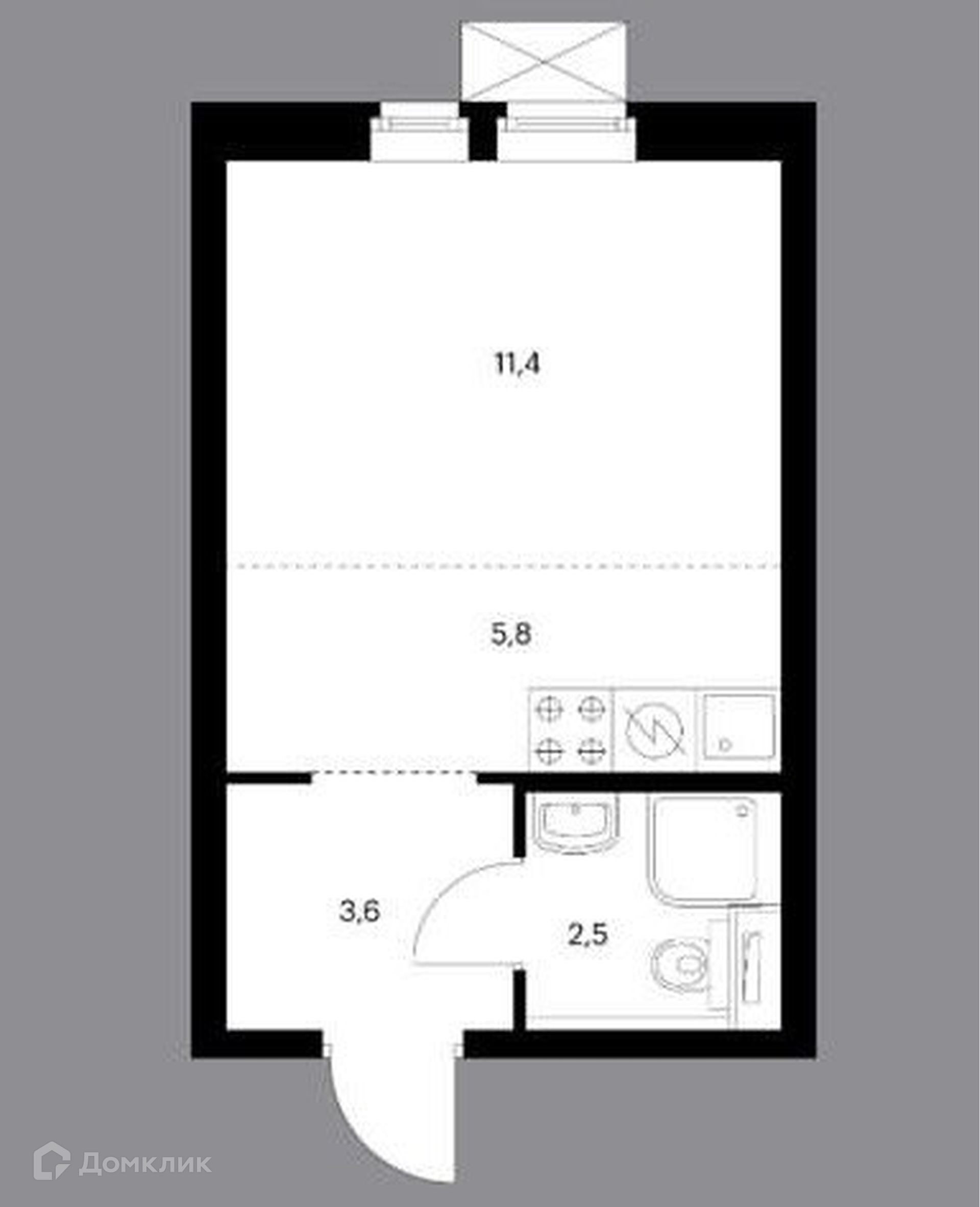 Жилая площадь 11.4 м2