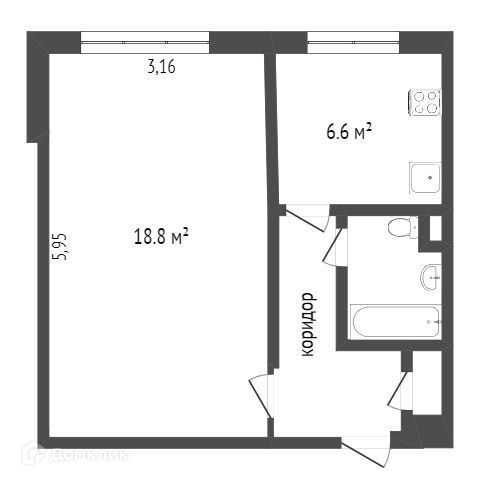 Общая площадь 33 м2