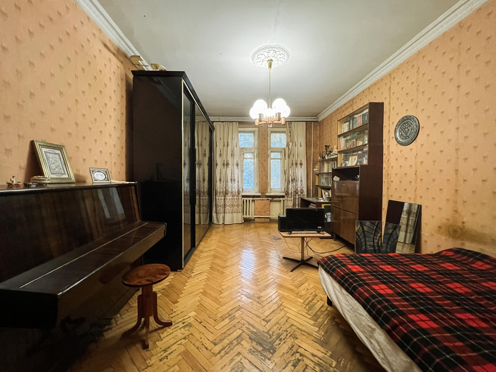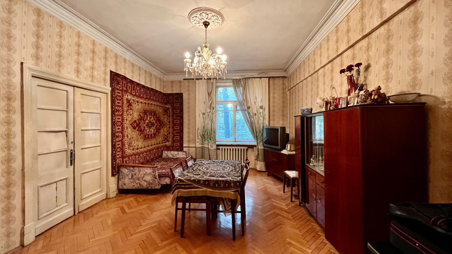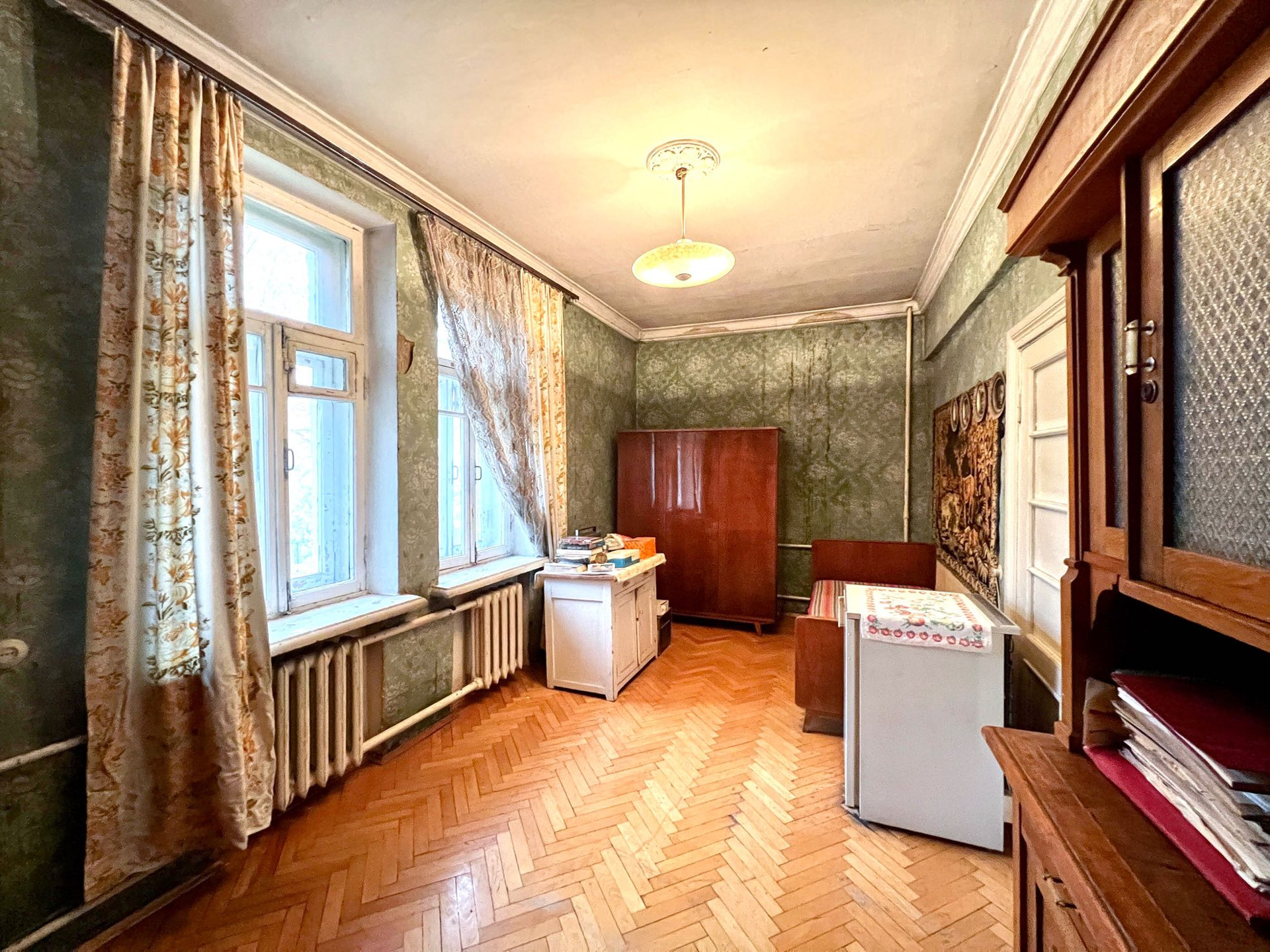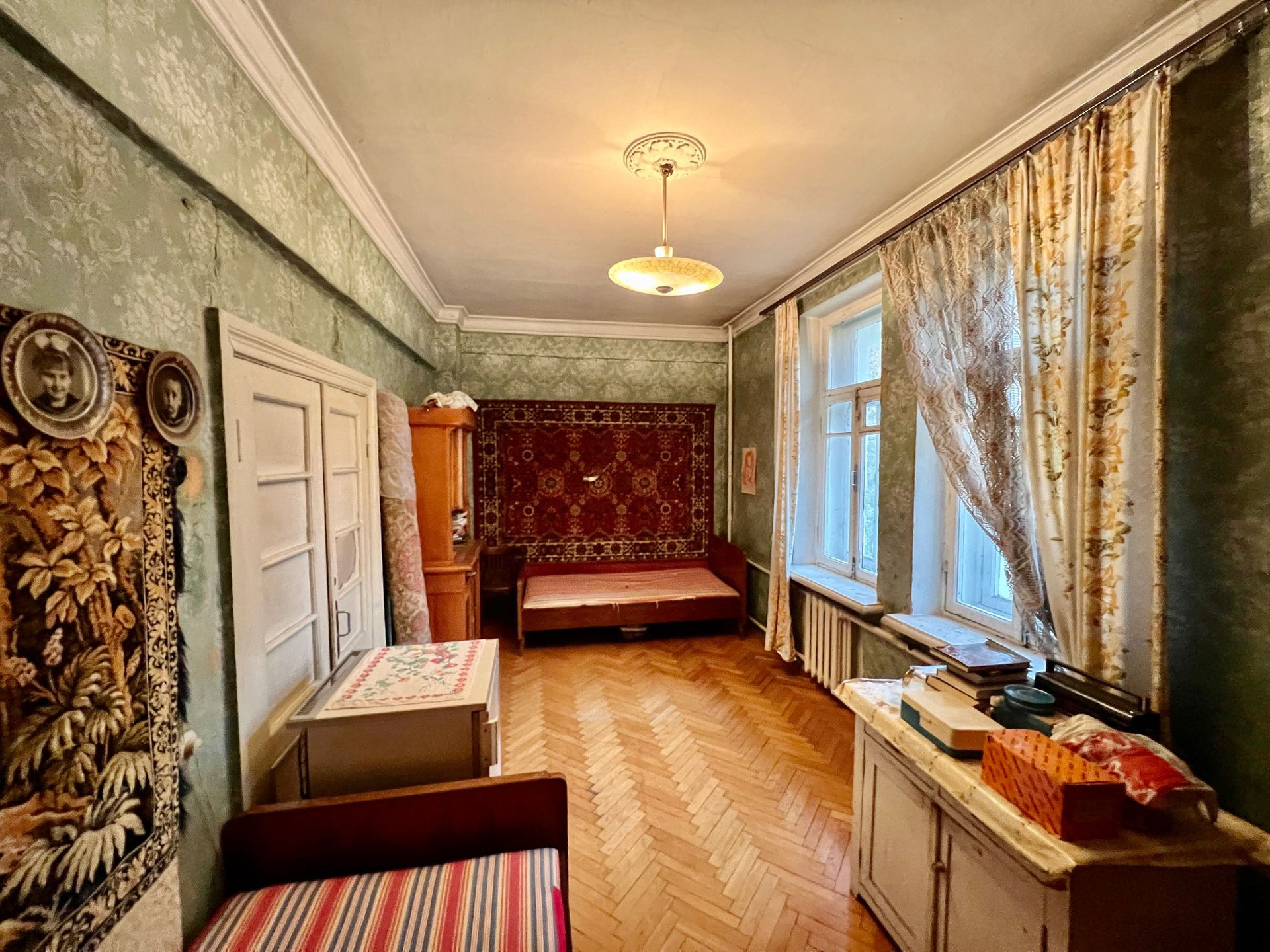 Продается квартира в доме сталинской эпохи в окружении скверов и парка. Дом отремонтированный, теплый. Квартира на комфортном 2-ом этаже, солнечная сторона.  Отсутствие капитальных стен позволяет сделать любой вид планировки. Высокие потолки, просторно. Отличная транспортная доступность, развитая инфраструктура. По документам: два взрослых собственника, приватизация.
